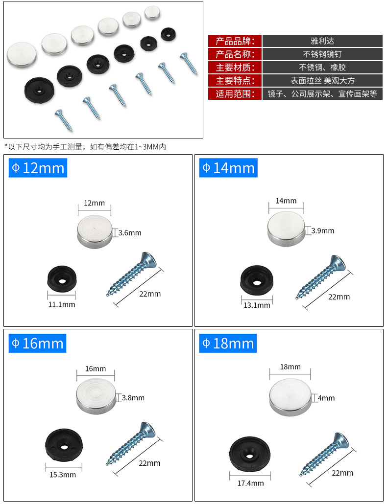 거울 네일 추악한 장식 커버 광고 네일 셀프 태핑 스크류 홀 캡 스테인레스 스틸 유리 아크릴 지원 고정 버클스토어 가기