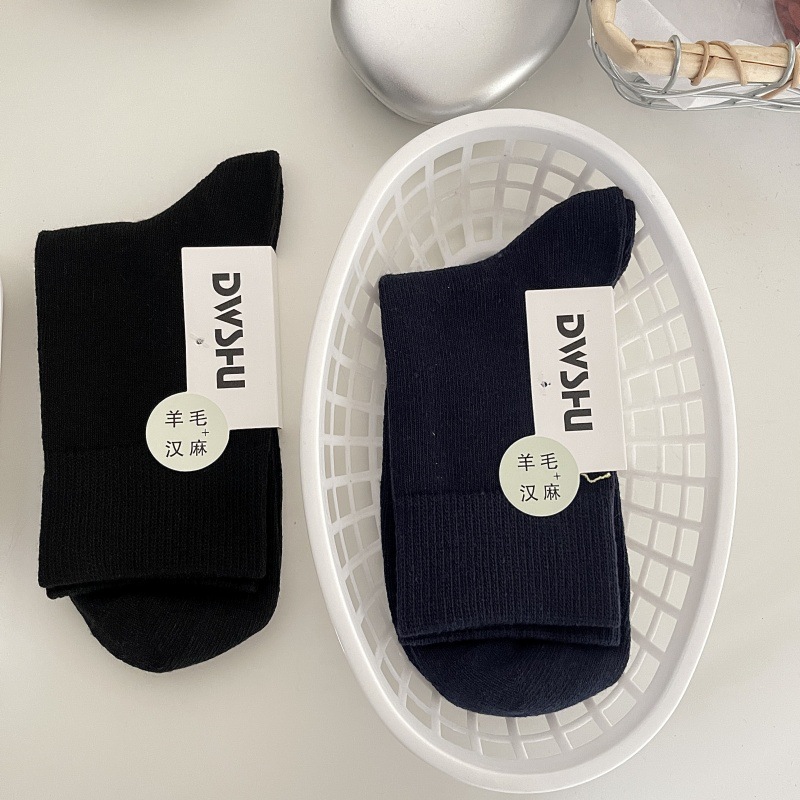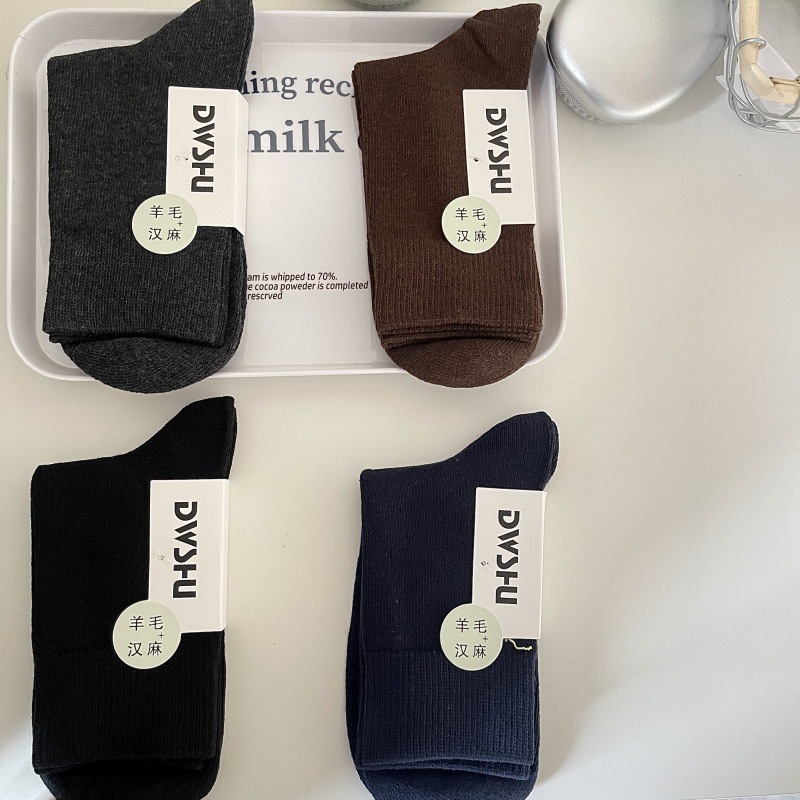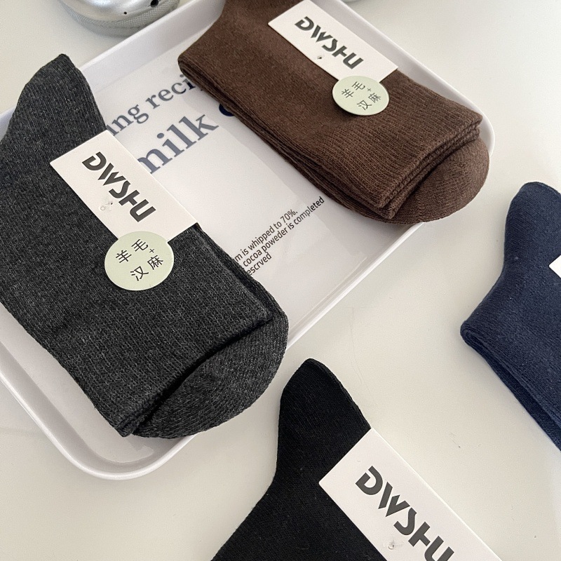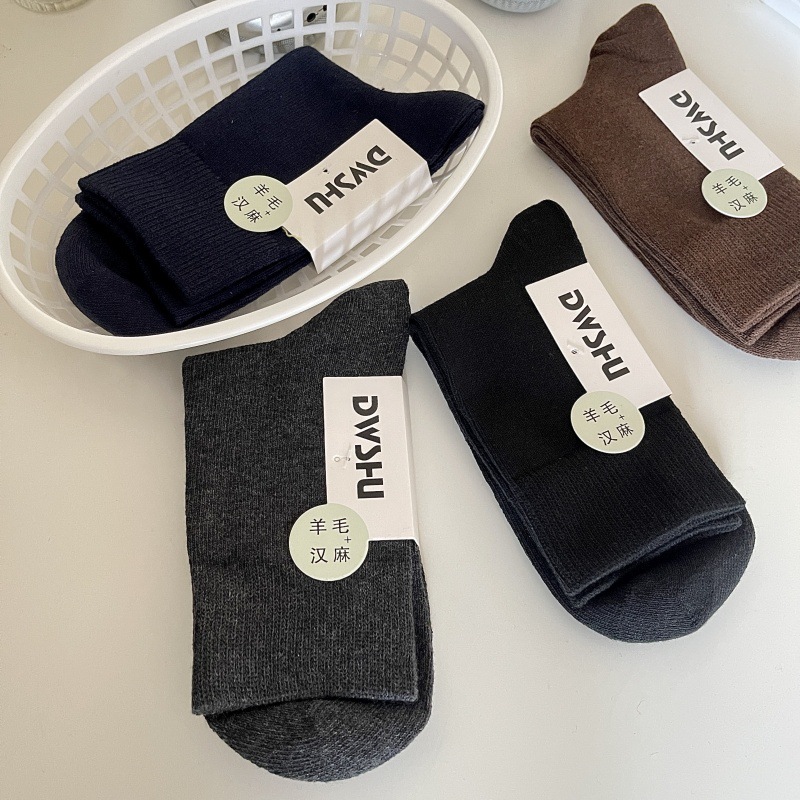 제한! 단색 뼈없는 남녀 양모 양말 가을과 겨울 두꺼운 양모 대마 양말 남성의 따뜻한 비즈니스 양말스토어 가기