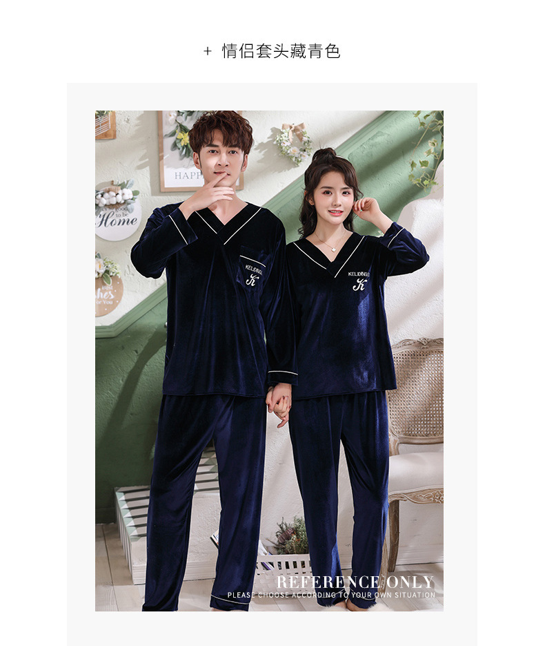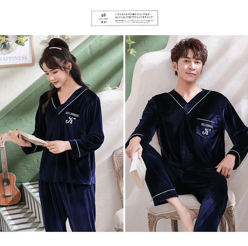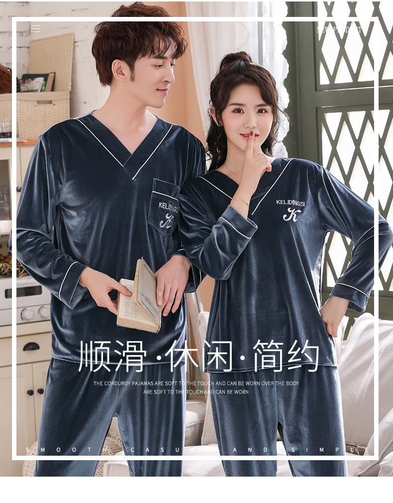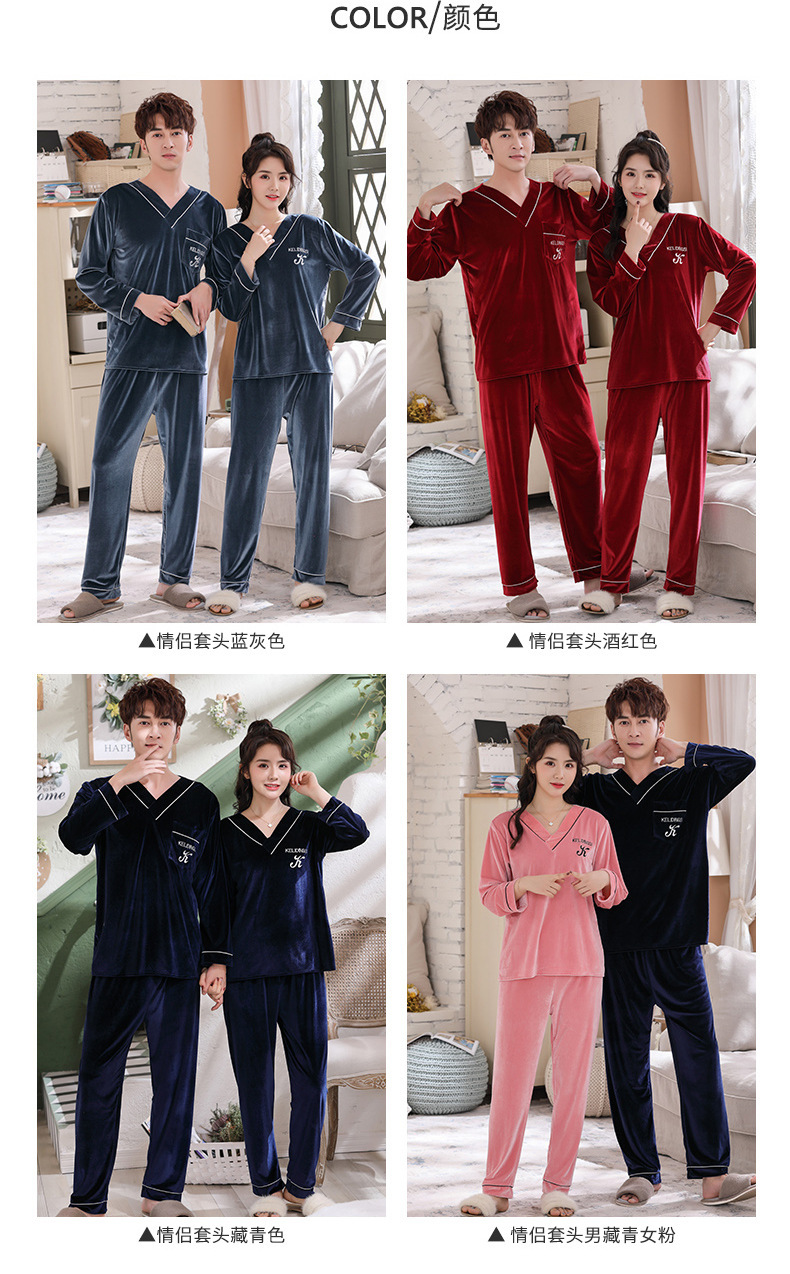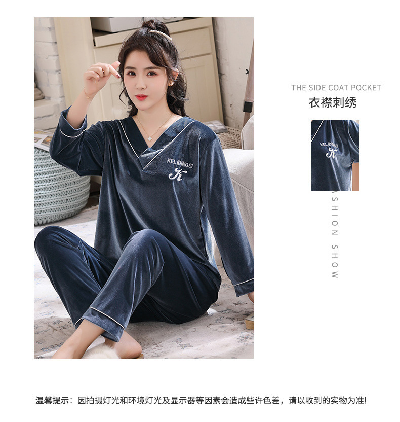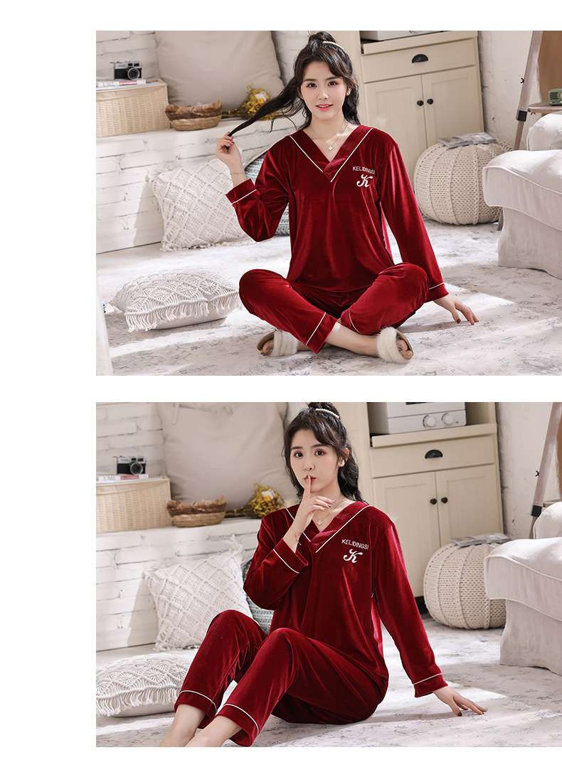 2026년 가을 신상 골드벨벳 잠옷, 긴팔 V넥 잠옷, 외출복으로도 활용 가능한 캐주얼 홈웨어 투피스 세트