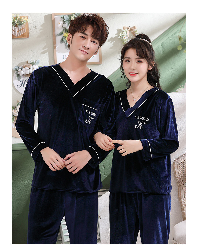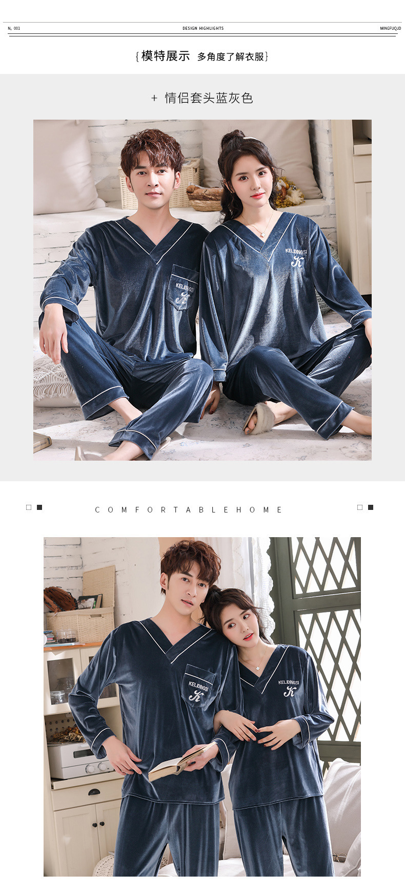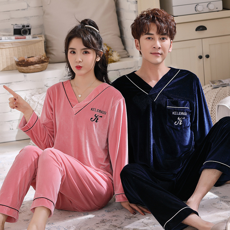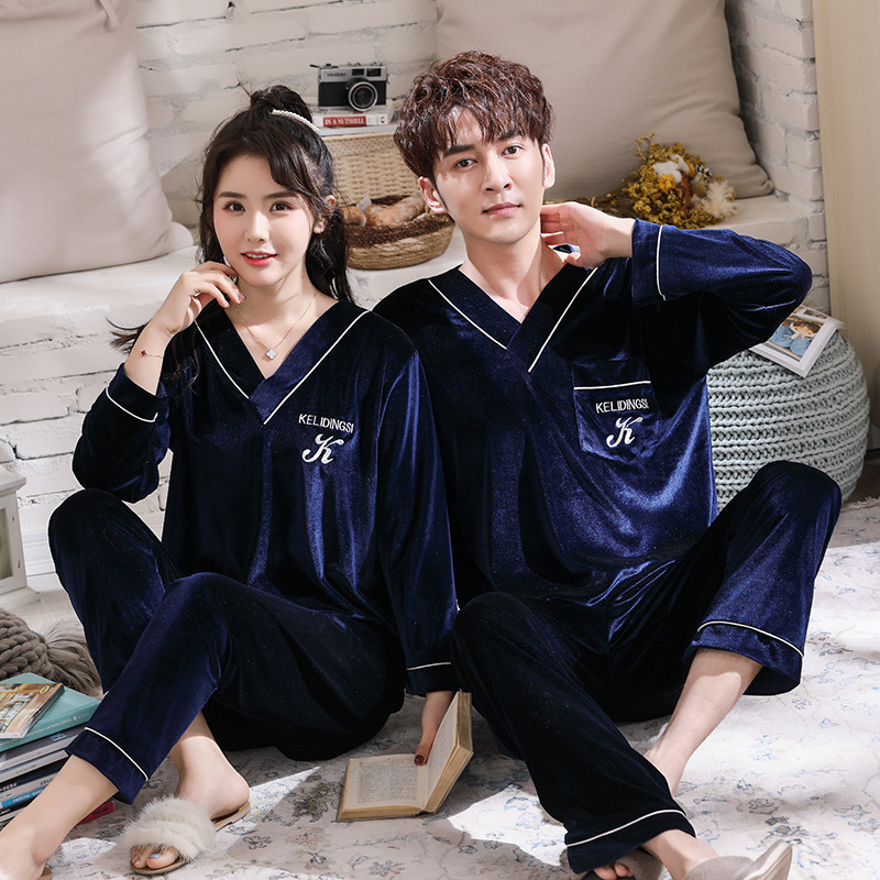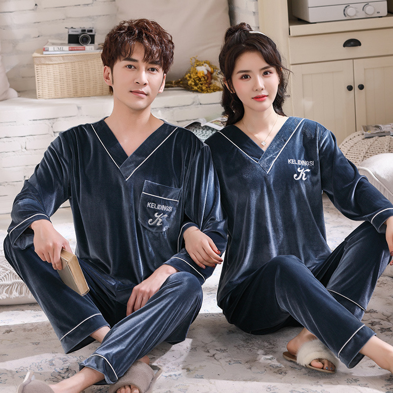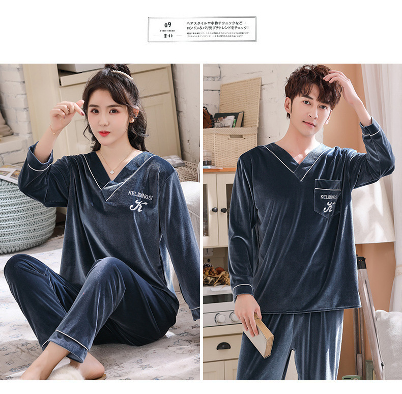 2026년 가을 신상 골드벨벳 잠옷, 긴팔 V넥 잠옷, 외출복으로도 활용 가능한 캐주얼 홈웨어 투피스 세트