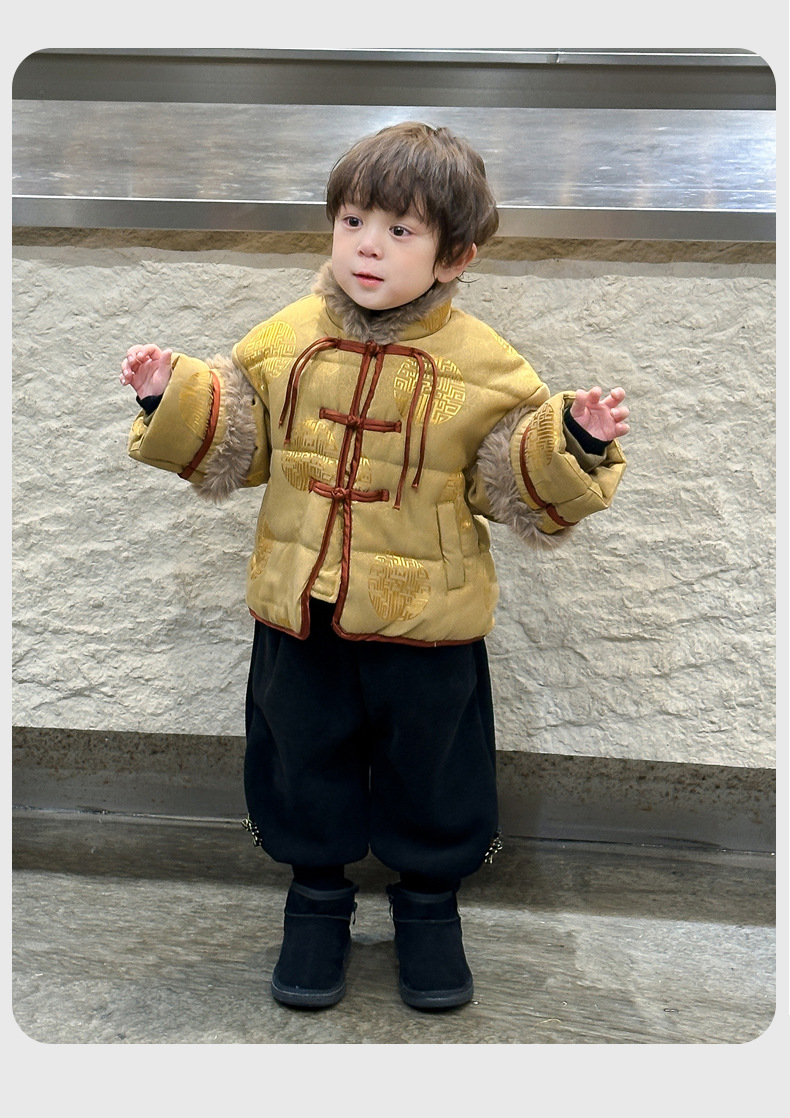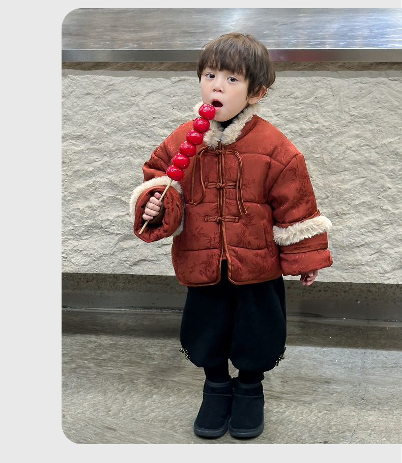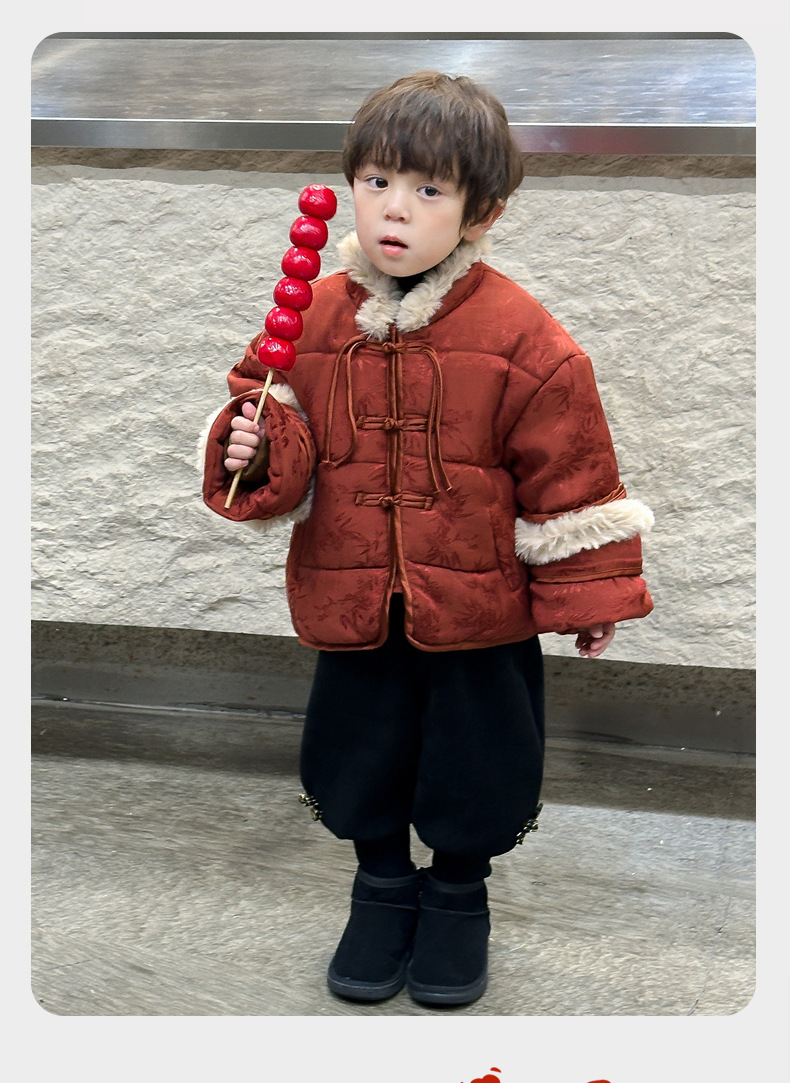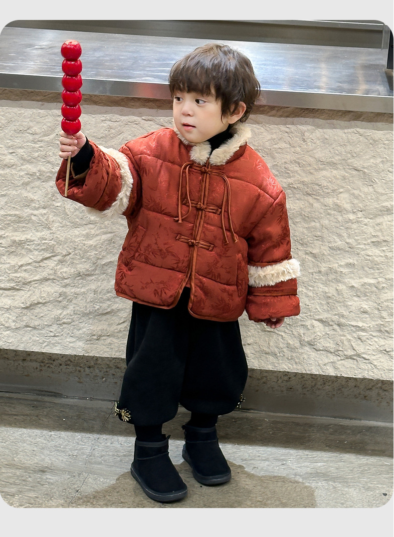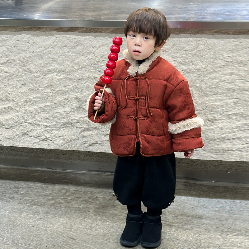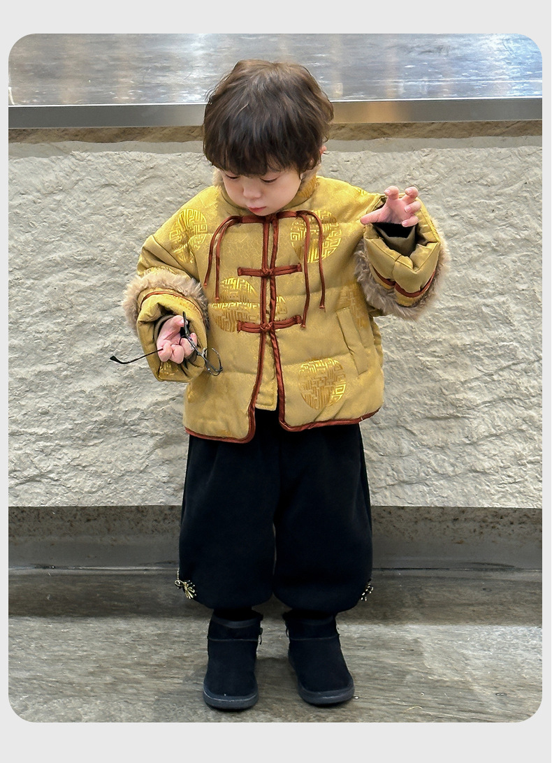 Guofeng Hanfu 소년 겨울 2024 새 두꺼운 신년 의류 여성 보물 유행 어린이 설날 세트 아기 탕 세트스토어 가기