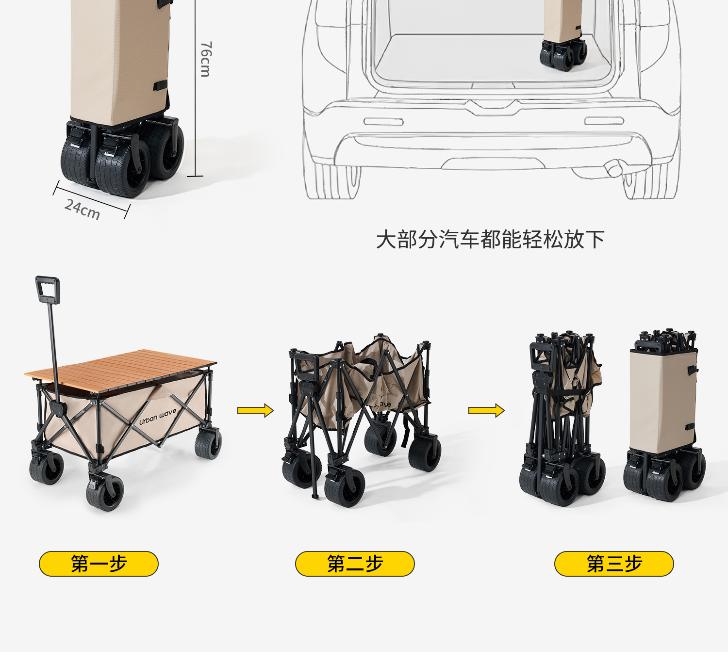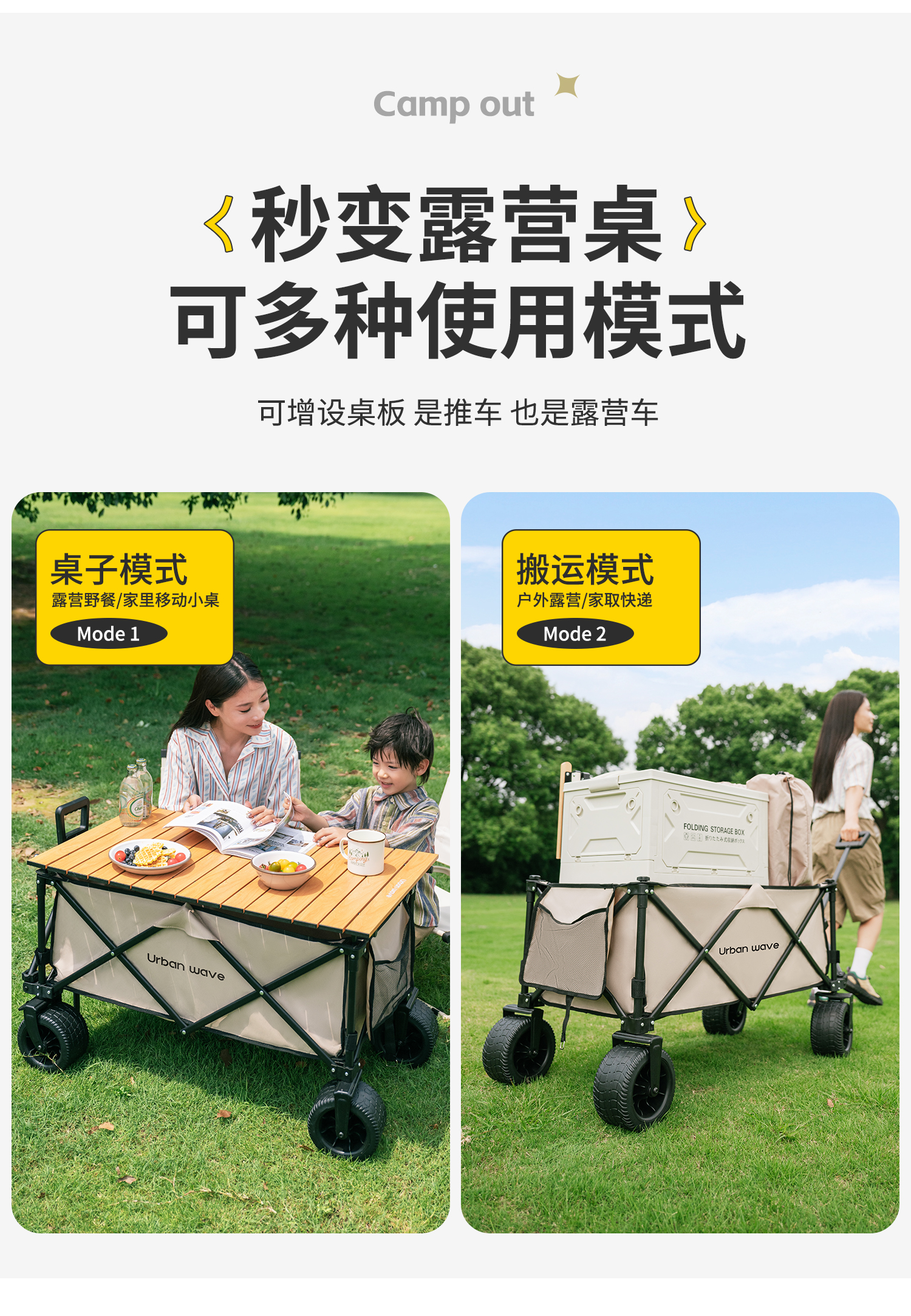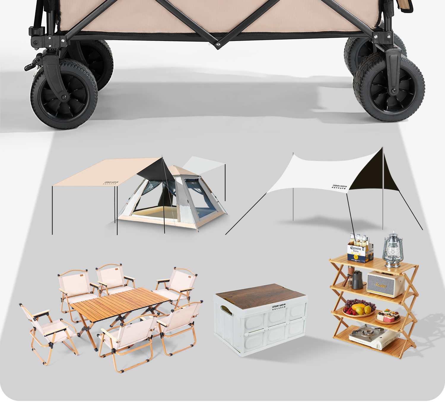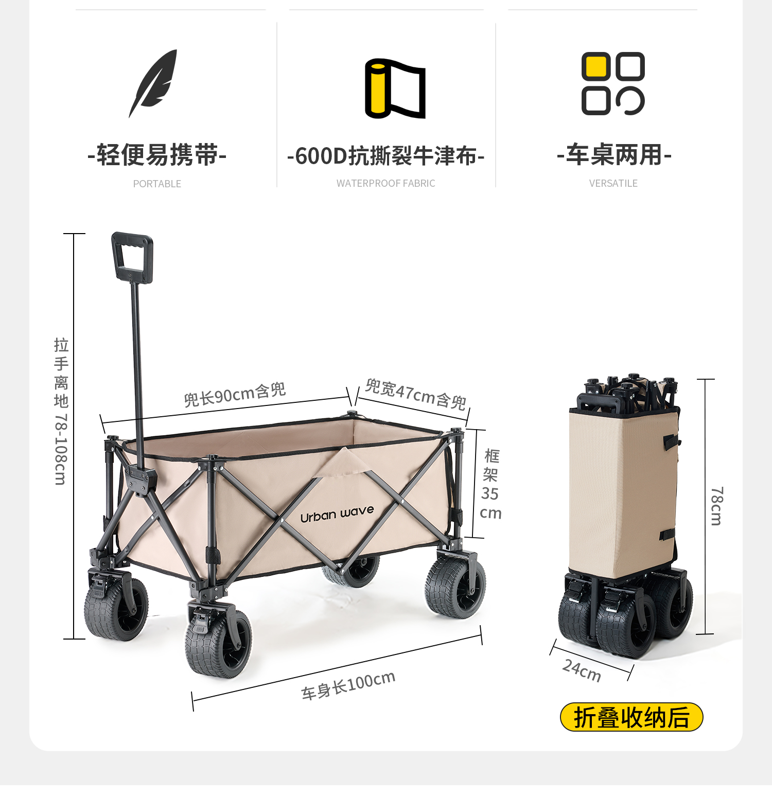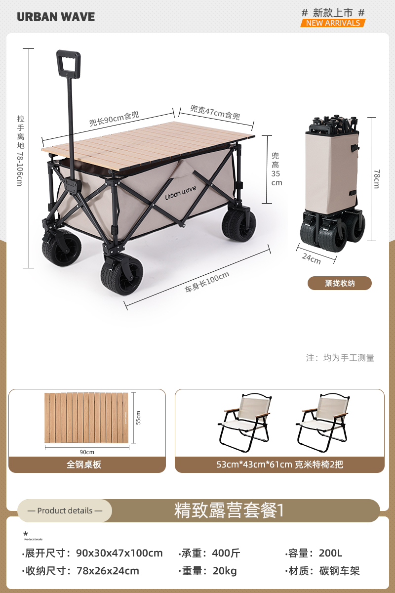 도시 파도, 캠핑 트롤리 야외 접이식 캠핑 트레일러 여행 풀 트롤리 피크닉 리틀 킹 골드스토어 가기