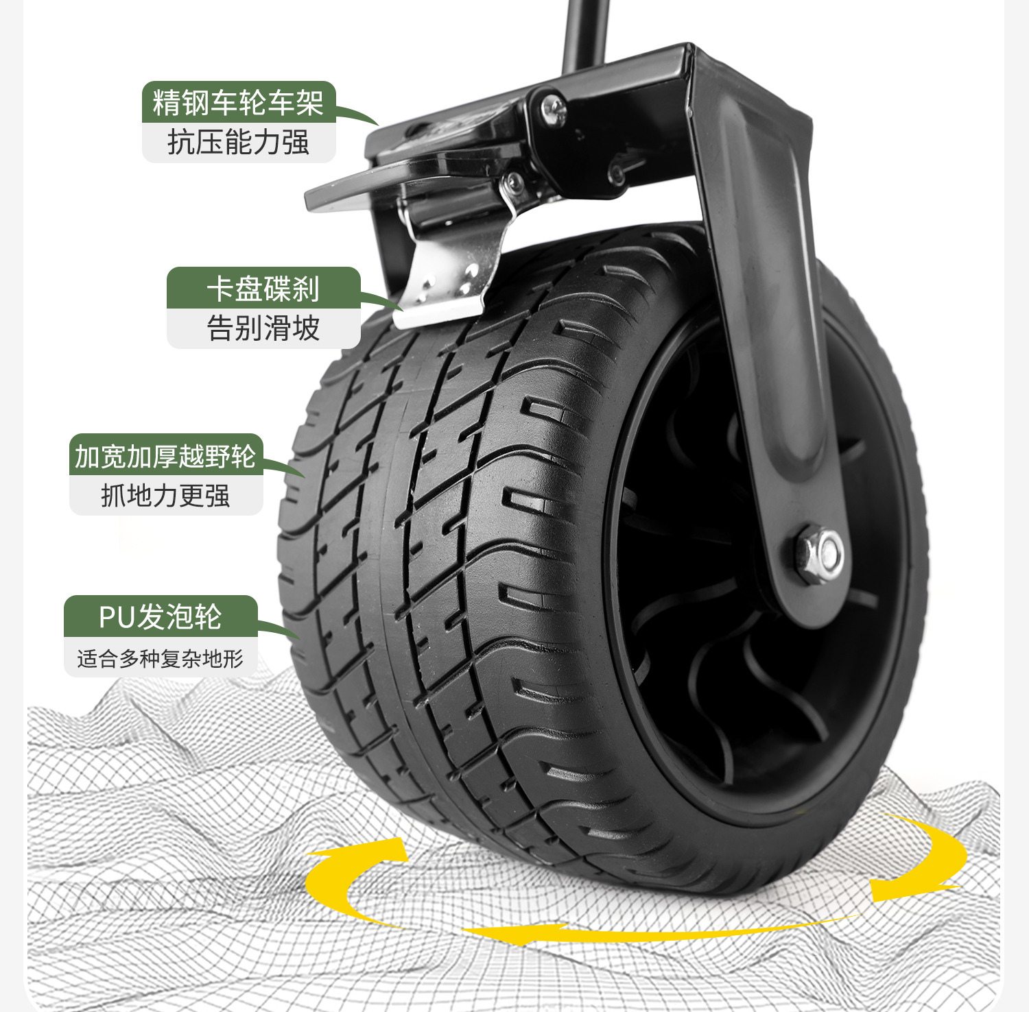 • 카키색을 늘려서 모아보세요 [이중축 브레이크/10cm 넓어진 충격흡수 PU 휠/내하중 200kg ]♢
