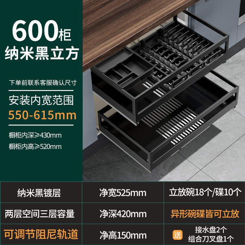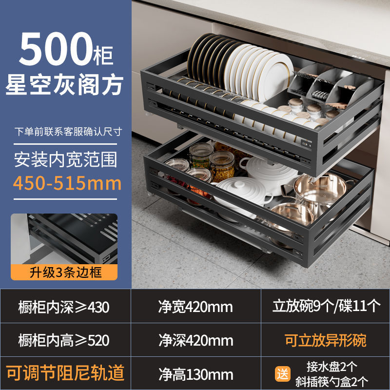 셰인 주방 바구니 304 스테인레스 스틸 서랍 유형 댐핑 이중층 조미료 캐비닛 보관 배수 접시 랙