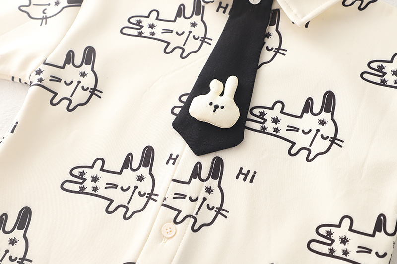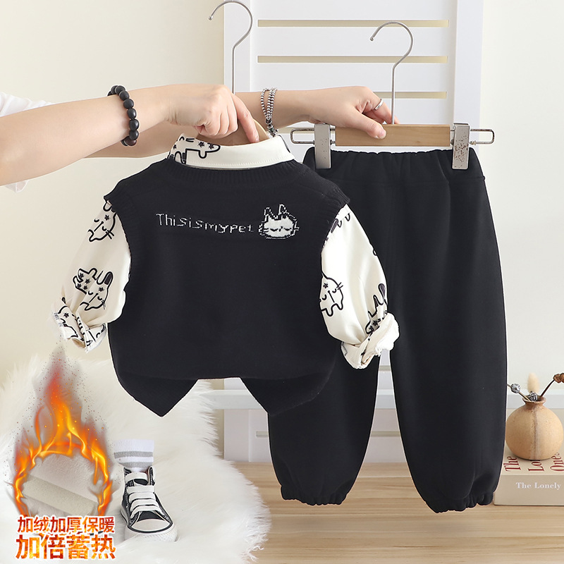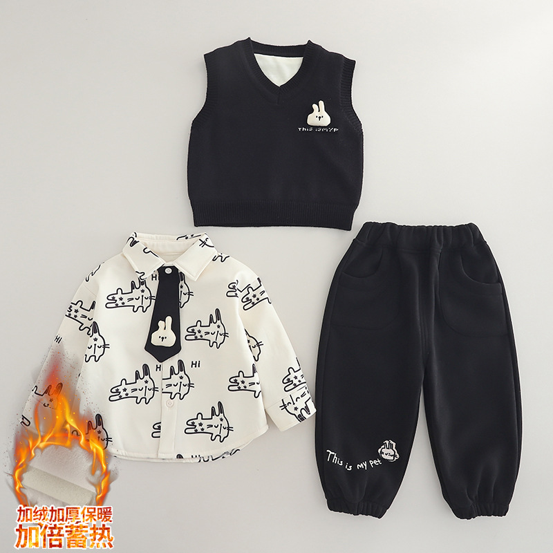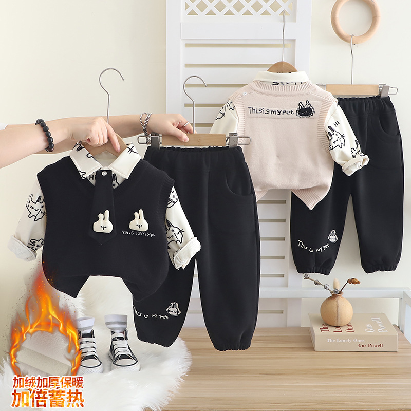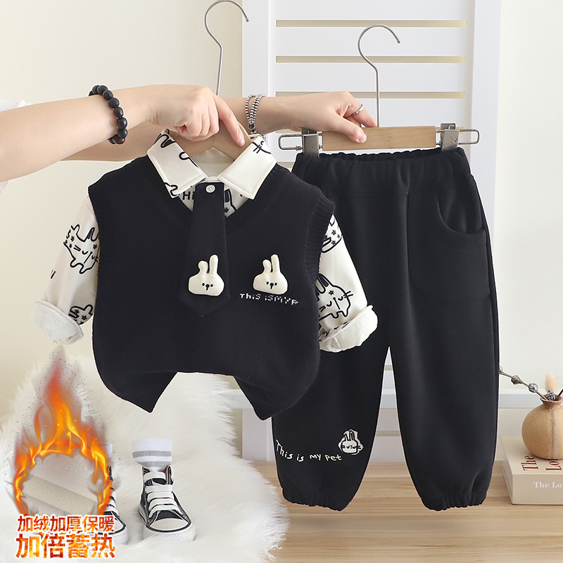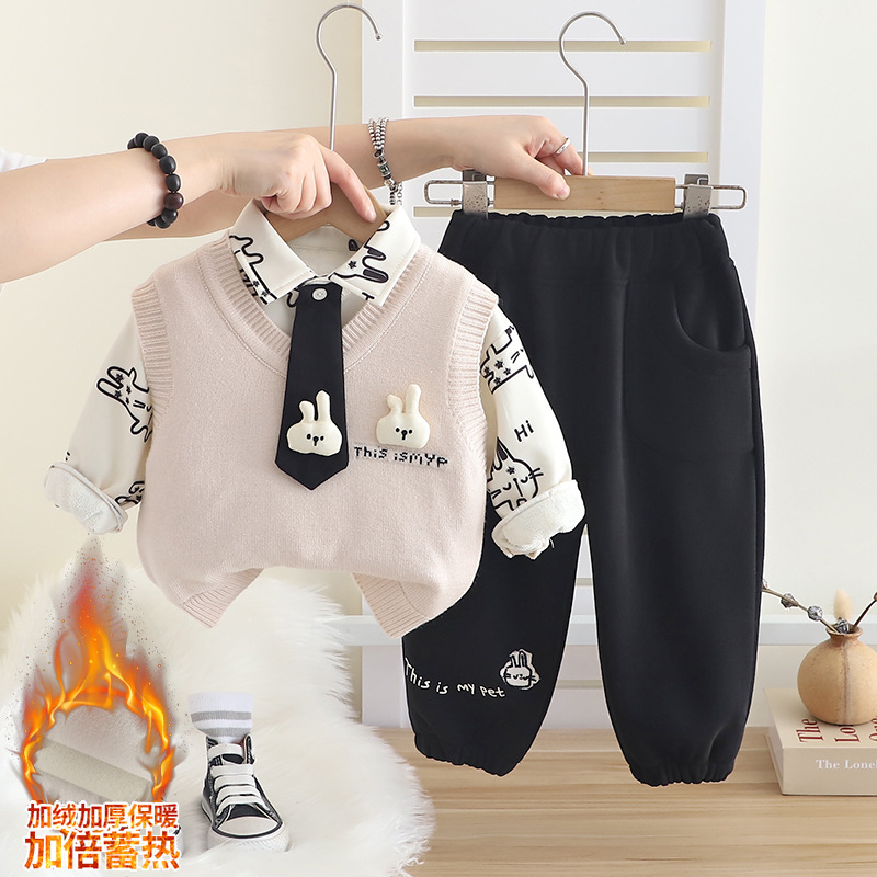 5 개의 작은 7 아동복 2024 가을과 겨울 새로운 0-4 세 어린이 소년 기모 토끼 스웨터 3 피스 세트