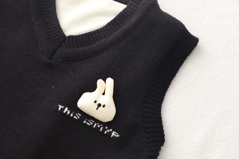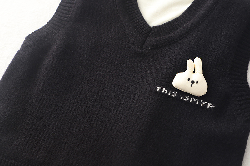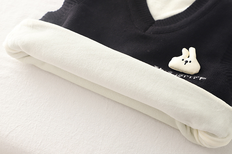 5 개의 작은 7 아동복 2024 가을과 겨울 새로운 0-4 세 어린이 소년 기모 토끼 스웨터 3 피스 세트스토어 가기
