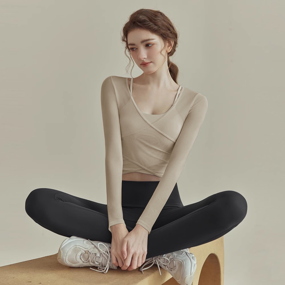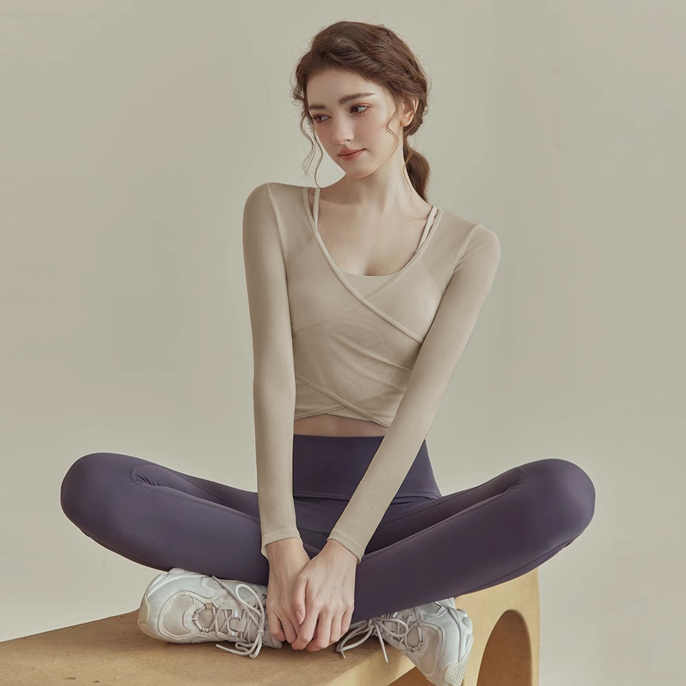 요가 정장 여성 봄 2021 새로운 전문 필라테스 훈련 정장 피트니스 정장 스포츠 긴 소매 탑 도매스토어 가기