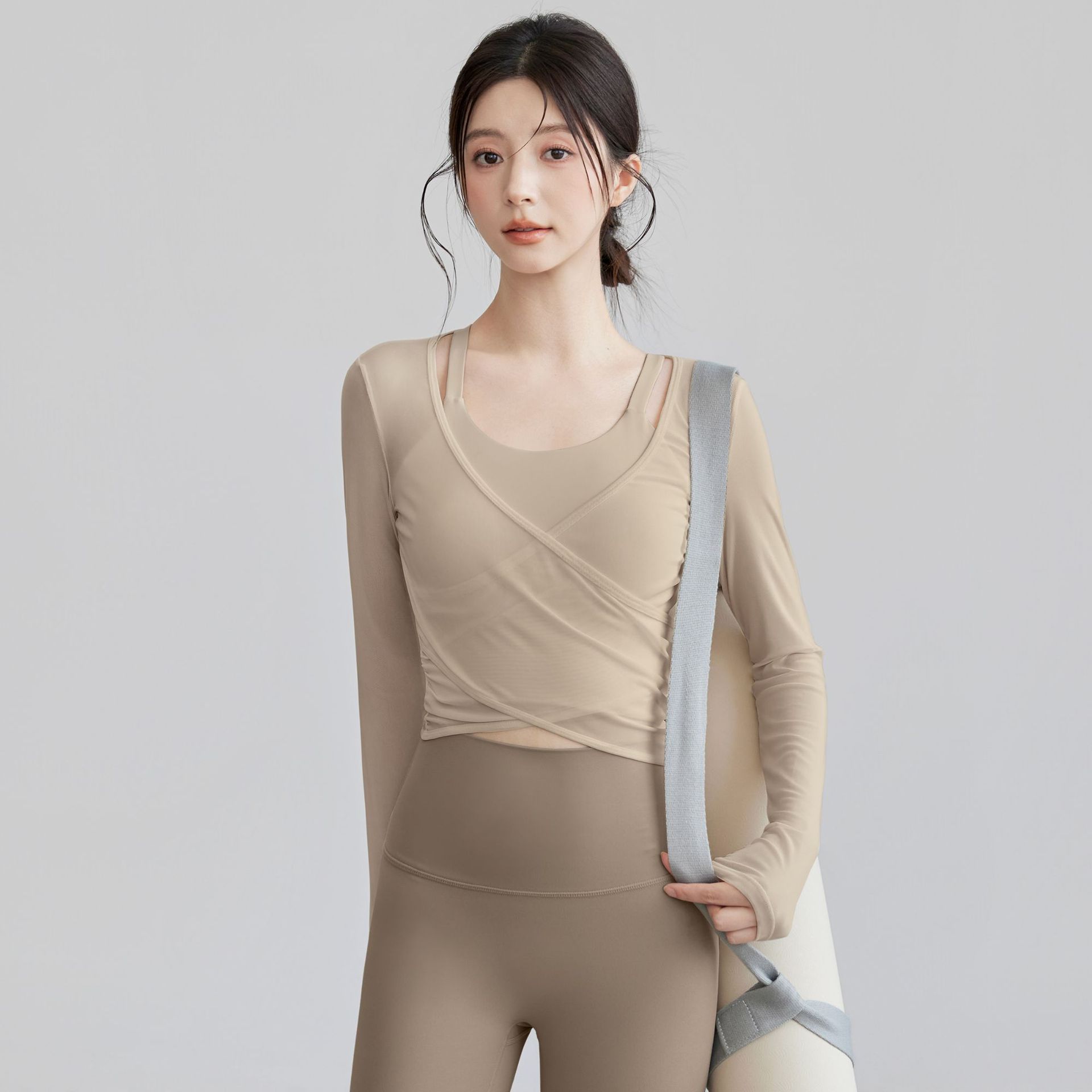 • 브라운 탑 + 그레이 요가 팬츠