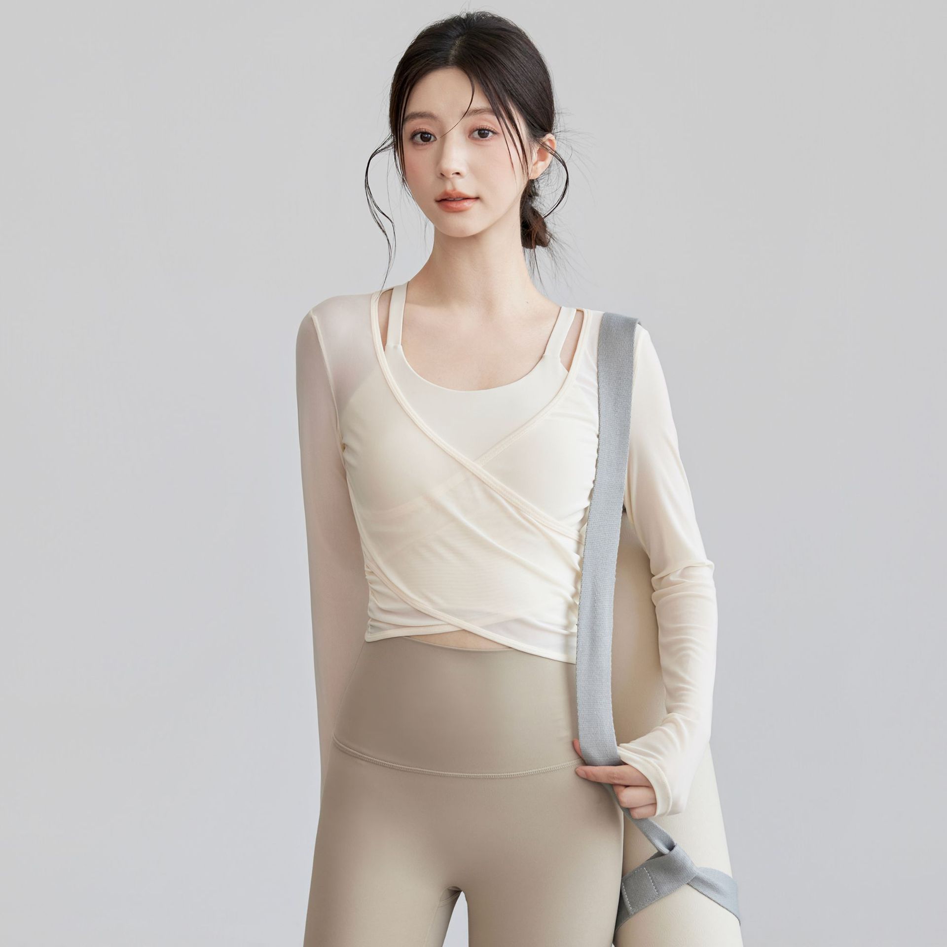 • 오프화이트 탑 + 그레이 요가팬츠