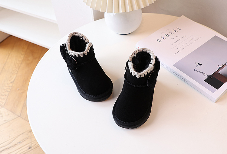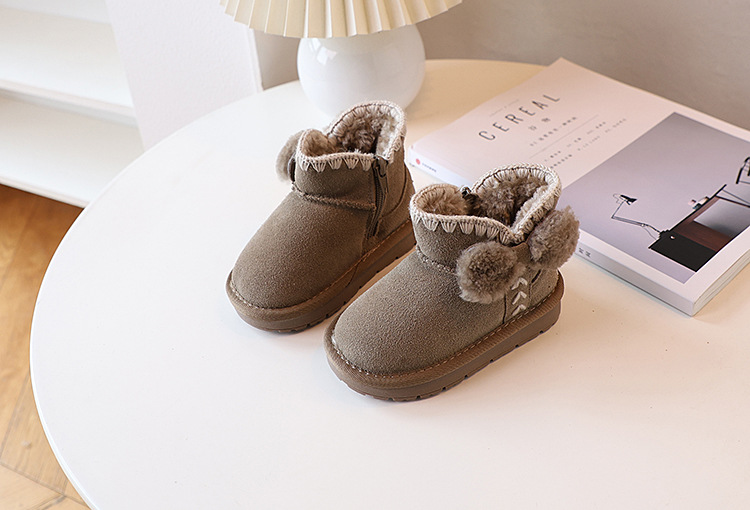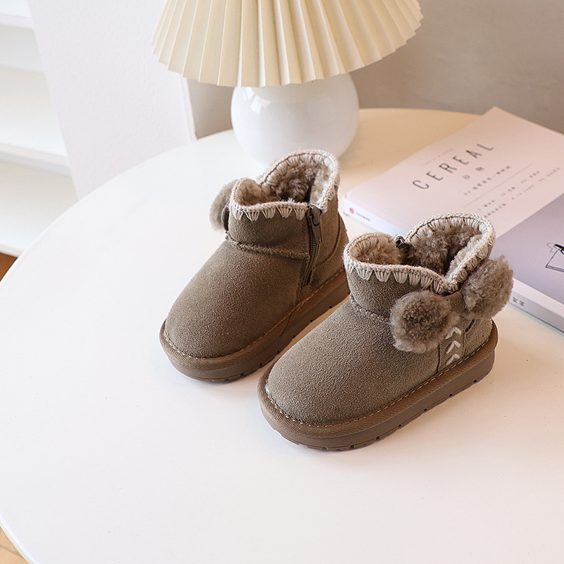 정품 가죽 어린이 스노우 부츠 2024 겨울 새 소녀의 기모 따뜻한 코튼 부츠 공주 부츠 어린이 발목 부츠 부드러운 바닥