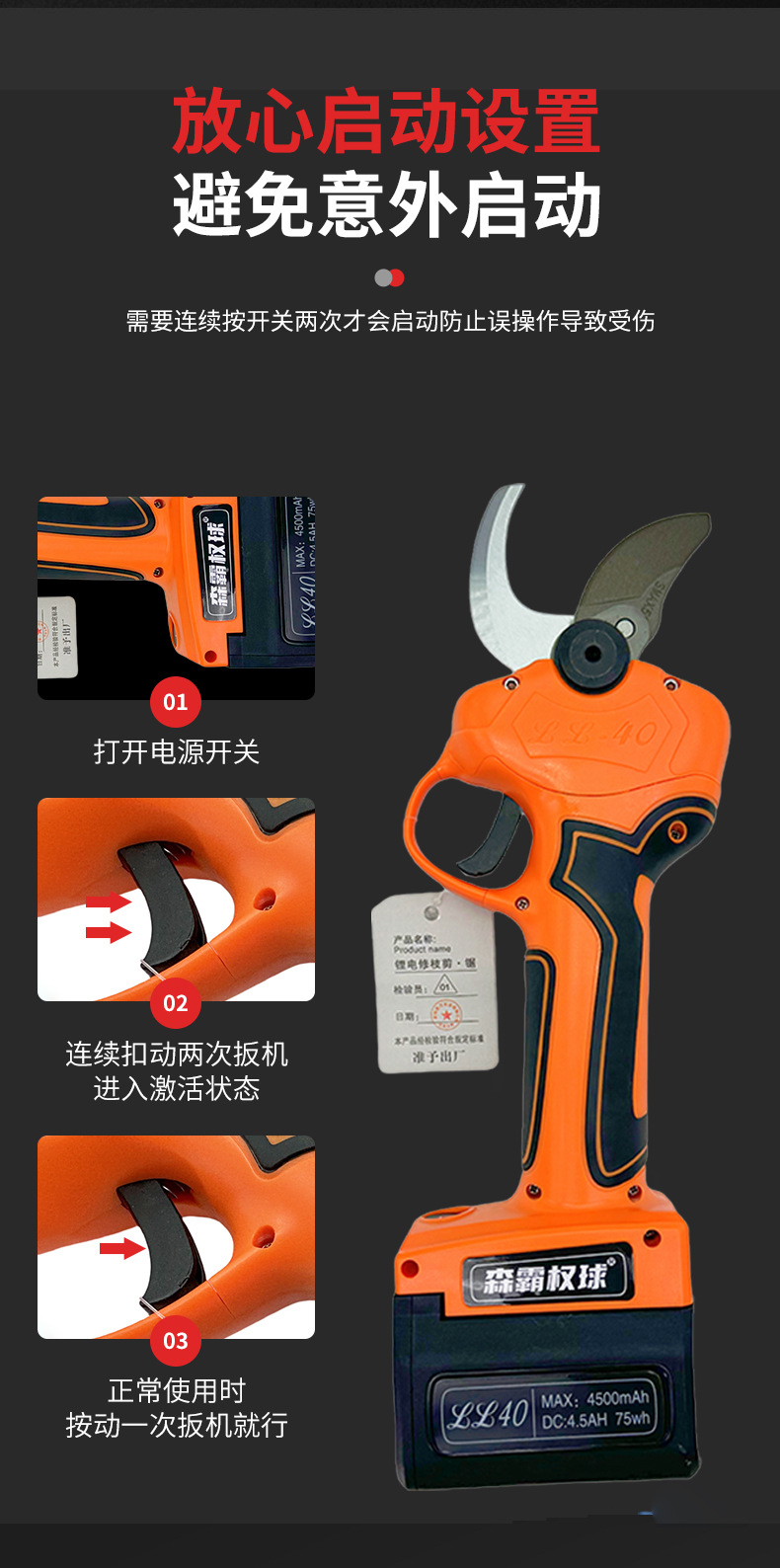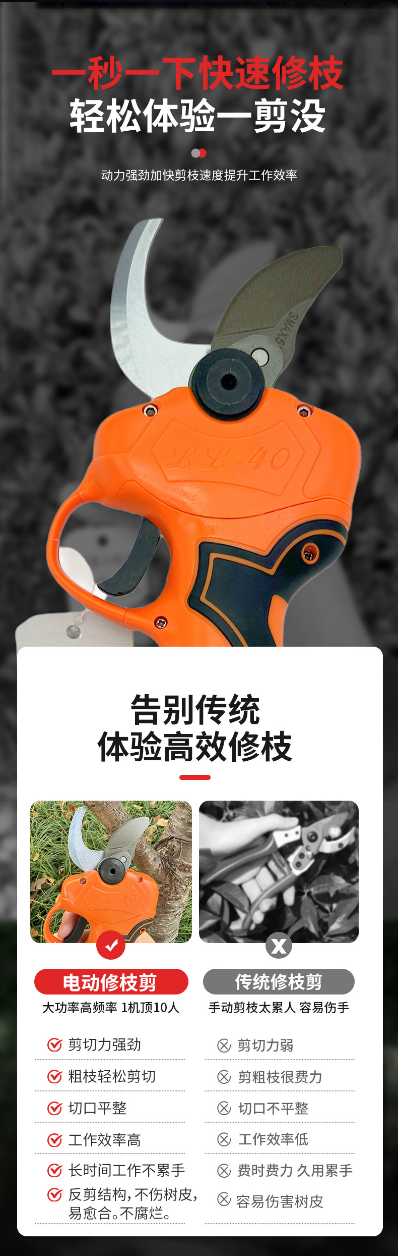 Senba Quan Ball 4.0 스트레이트 삽입 백 컷 과일 나무 두꺼운 지점 노동 절약형 전기 가지 가위 다기능 지점 가위 꽃 지점 가위