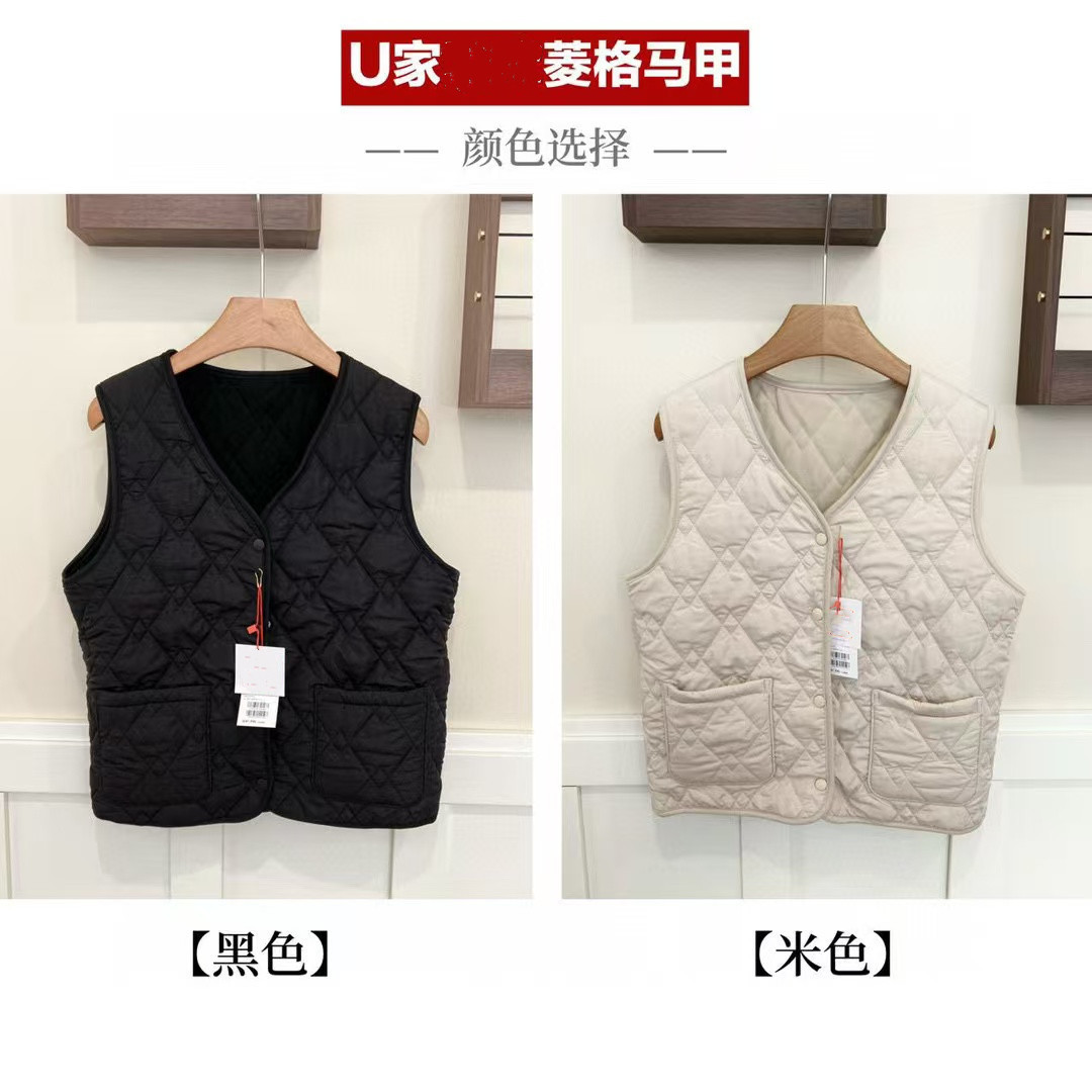 Ujia Yourhombus 2024 가을과 겨울을위한 조끼 새로운 남성과 여성의 간단한 편안한 경량 따뜻한 마름모 조끼스토어 가기