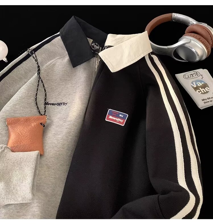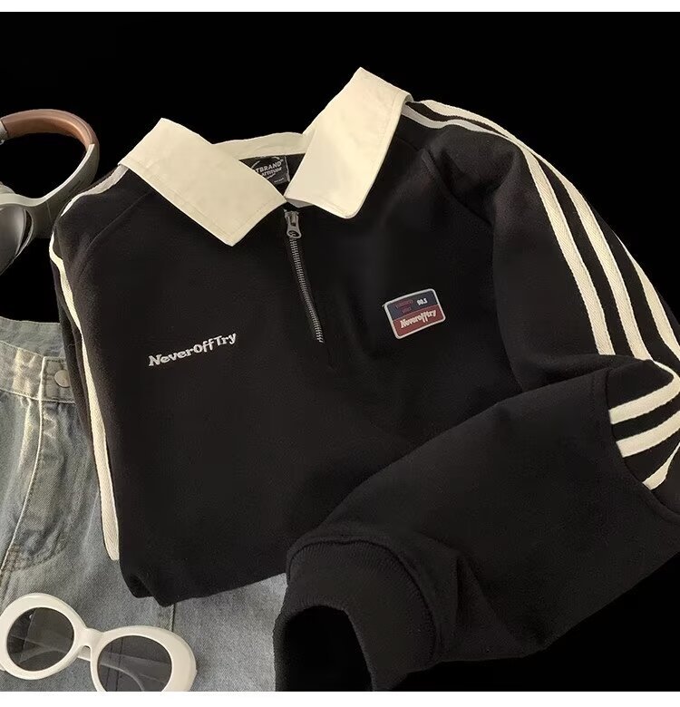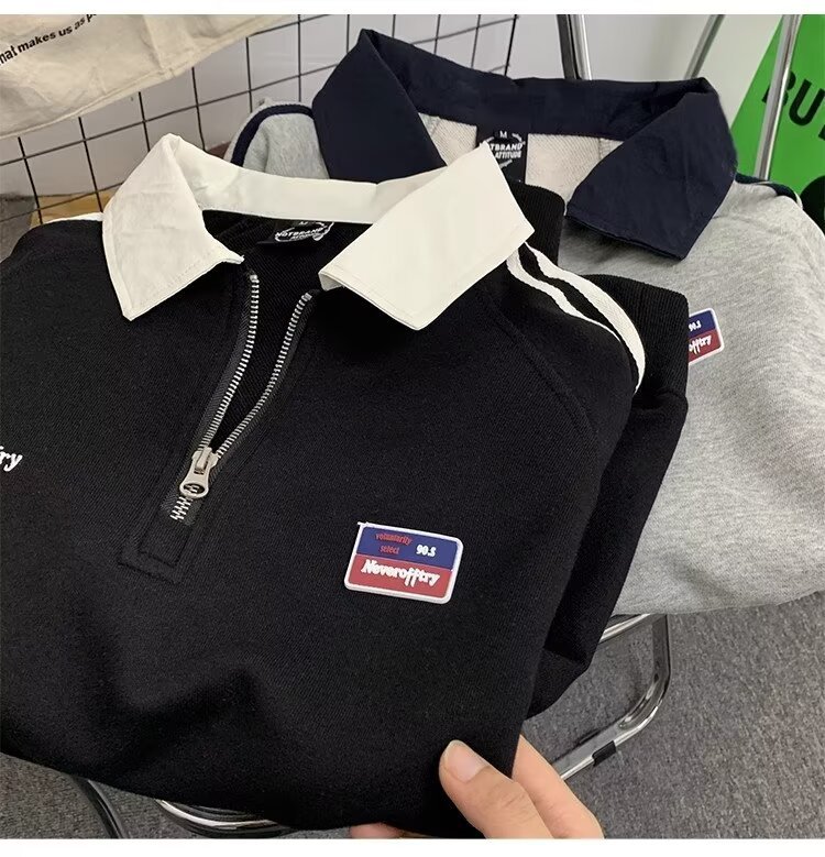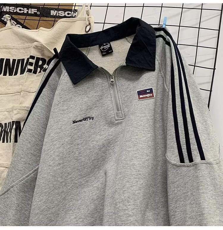 아메리칸 스타일 레트로 하프 지퍼 폴로 스웨터 남성과 여성의 가을 및 겨울 유행 느슨한 오버 사이즈 옷깃 재킷스토어 가기