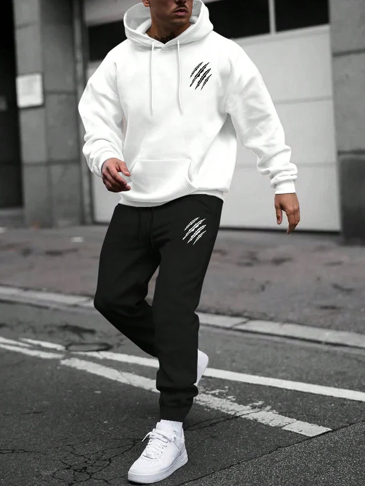 남성 가을, 겨울 운동복 + 바지 동물 발자국 스포츠 정장 여성 패션 캐주얼 스트리트 후드 재고 있음