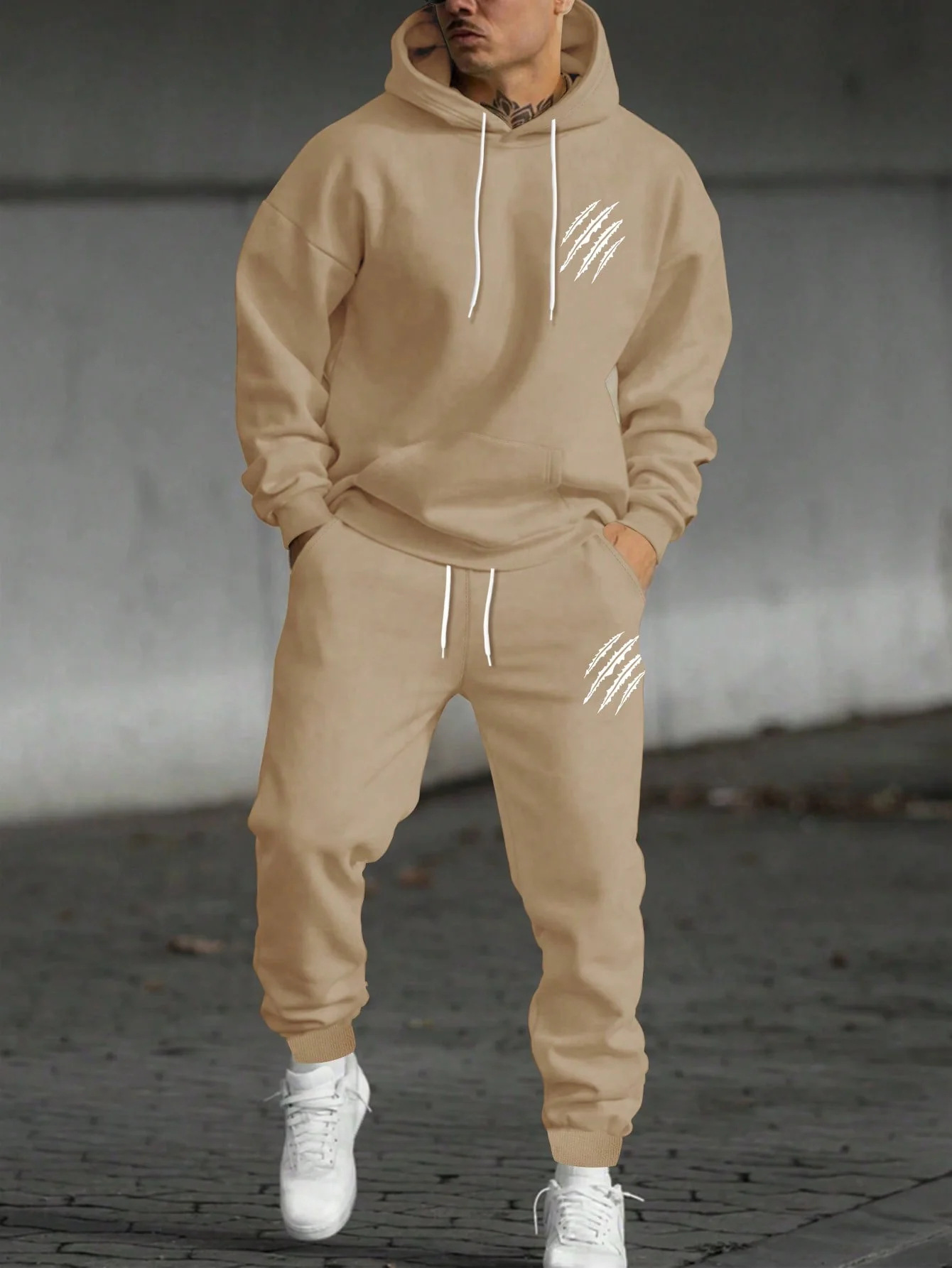 남성 가을, 겨울 운동복 + 바지 동물 발자국 스포츠 정장 여성 패션 캐주얼 스트리트 후드 재고 있음스토어 가기
