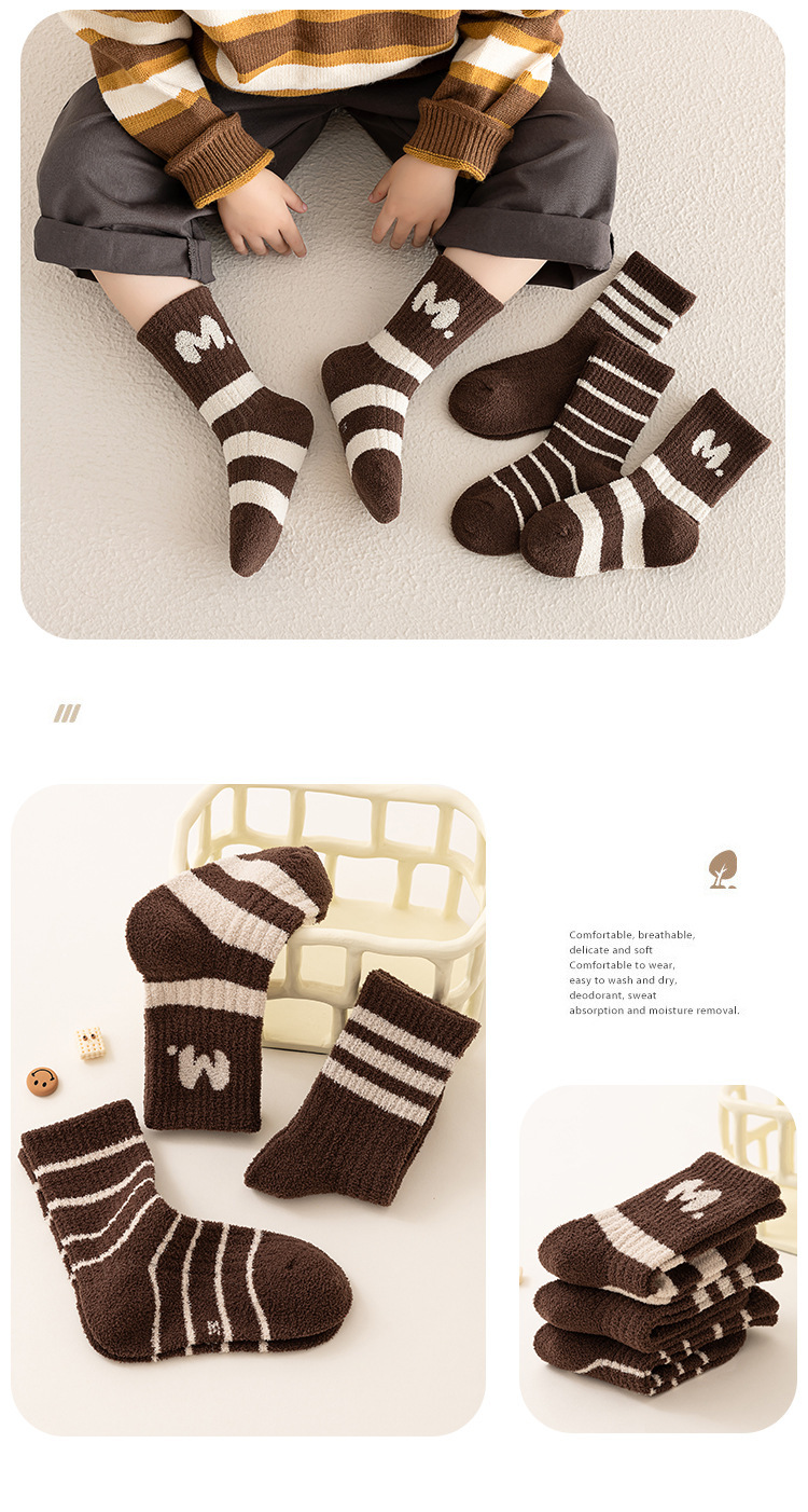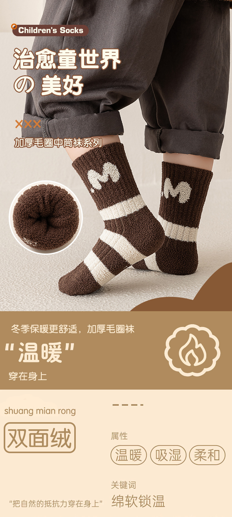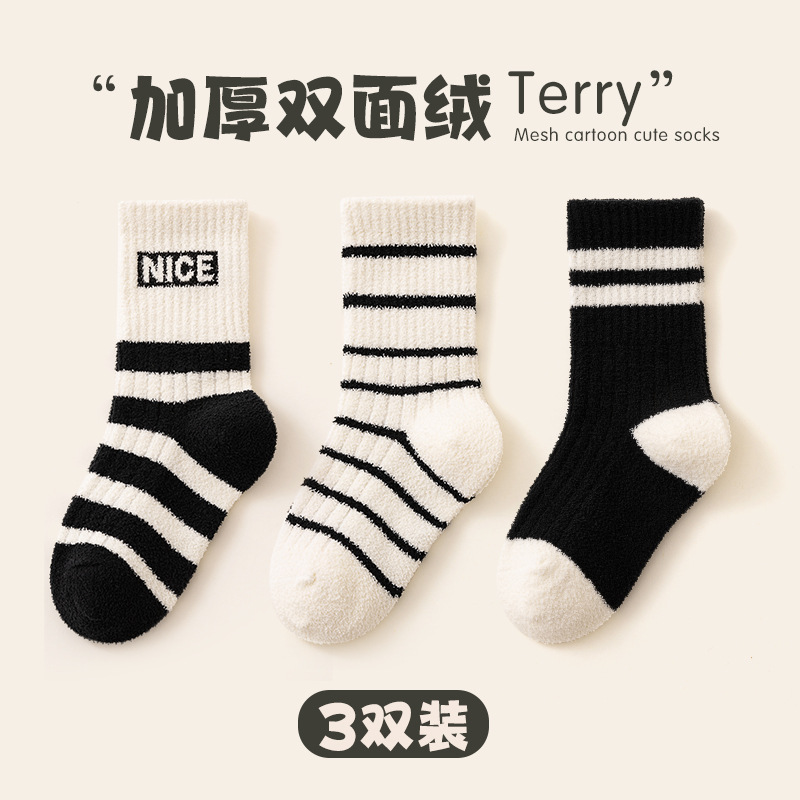 어린이 양말 도매 양면 벨벳 따뜻한 겨울 두꺼운 소년 소녀 편지 줄무늬 학업 스타일 기모 아기 두꺼운 양말스토어 가기