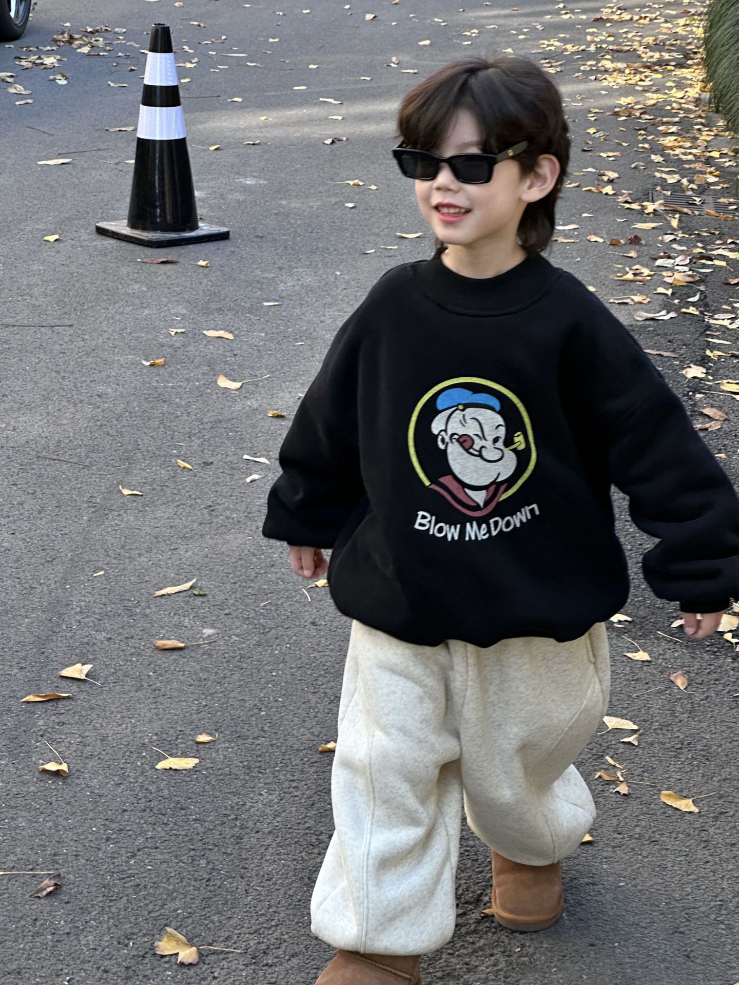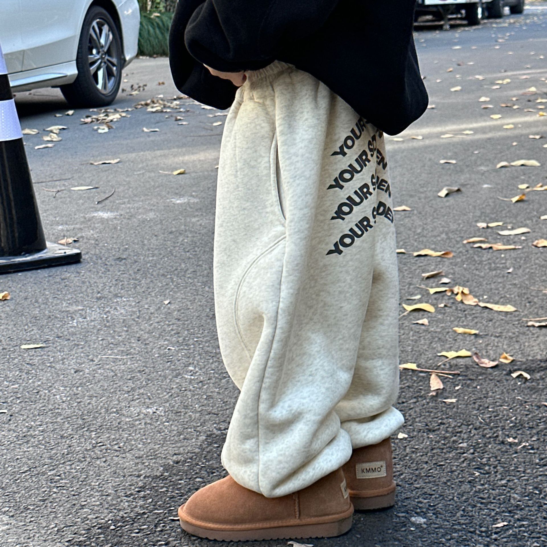 소년 운동복 겨울 새로운 한국식 느슨한 캐주얼 스포츠 기모 바지 어린이 잘 생긴 따뜻한 두꺼운 바지
