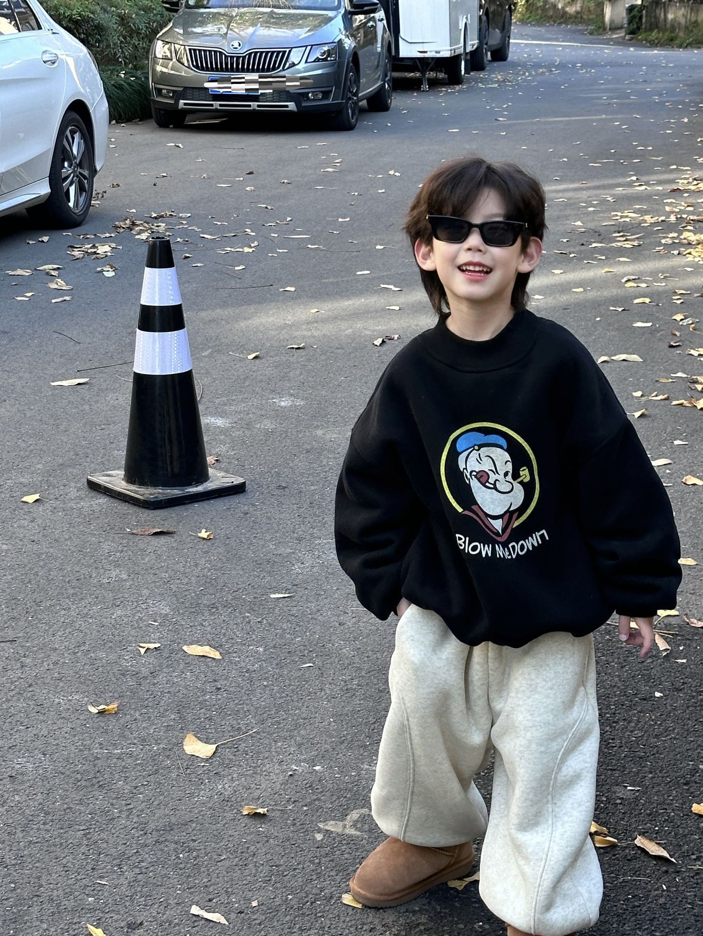 소년 운동복 겨울 새로운 한국식 느슨한 캐주얼 스포츠 기모 바지 어린이 잘 생긴 따뜻한 두꺼운 바지스토어 가기