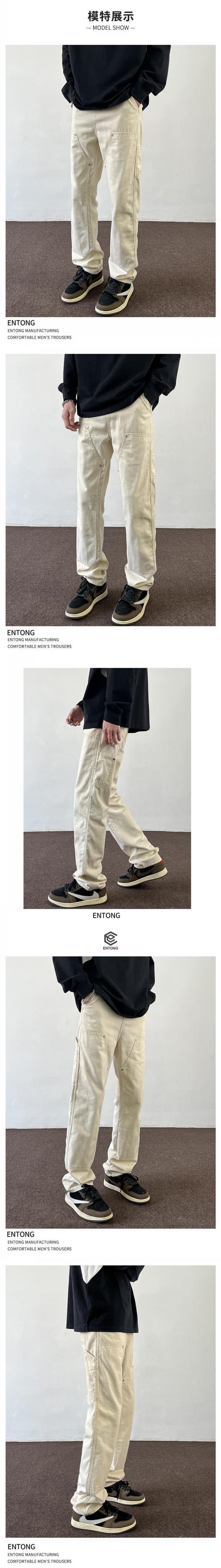 Entong American 스타일 클린 핏 로깅 바지 남성용 트렌디 브랜드 하이 스트리트 바이브 툴링 리벳 스트레이트 청바지스토어 가기