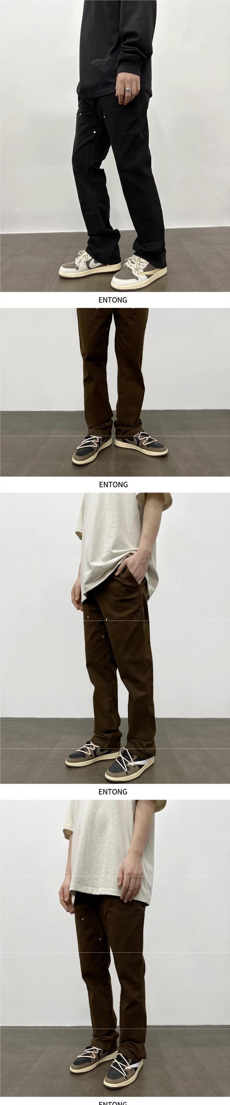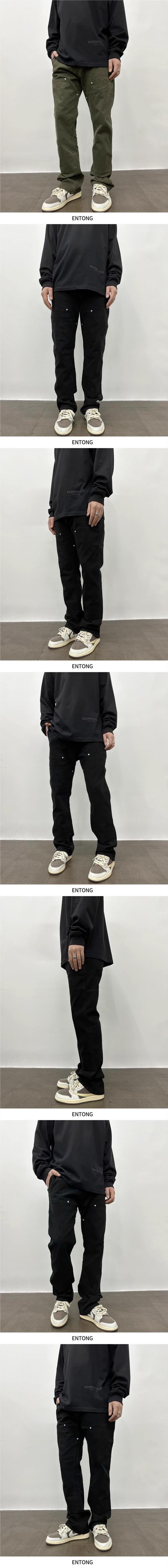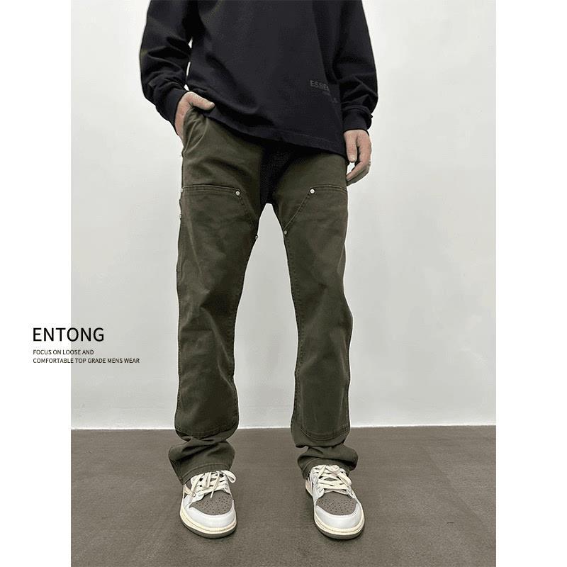 Entong American 스타일 클린 핏 로깅 바지 남성용 트렌디 브랜드 하이 스트리트 바이브 툴링 리벳 스트레이트 청바지