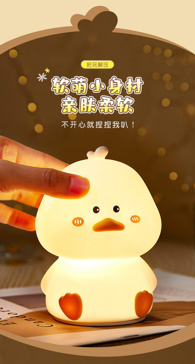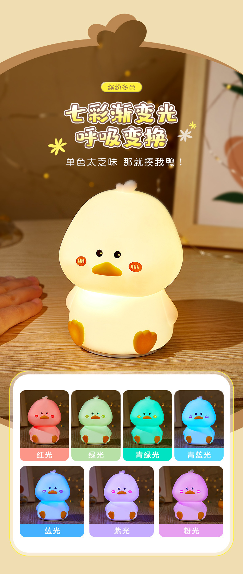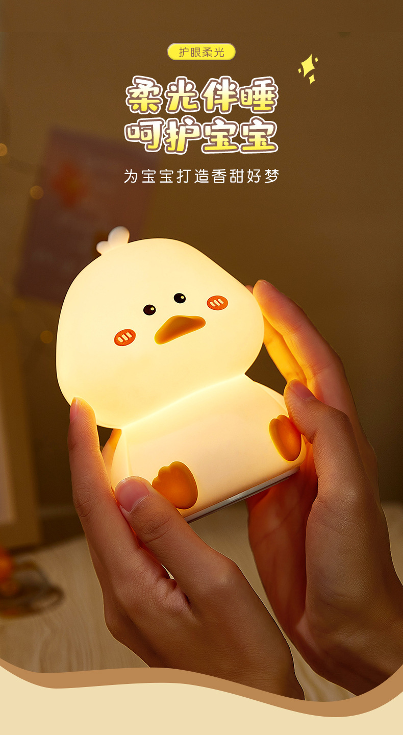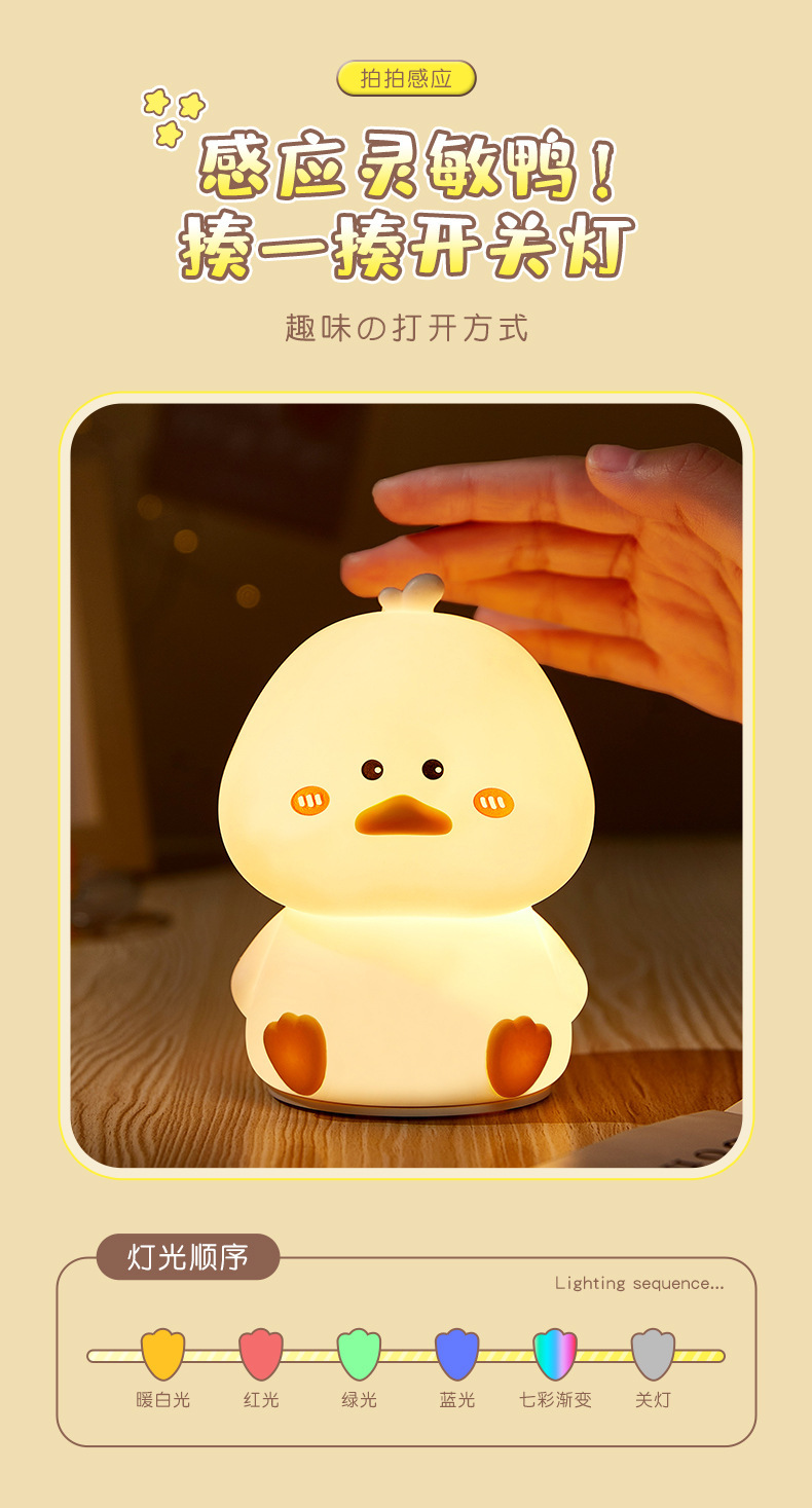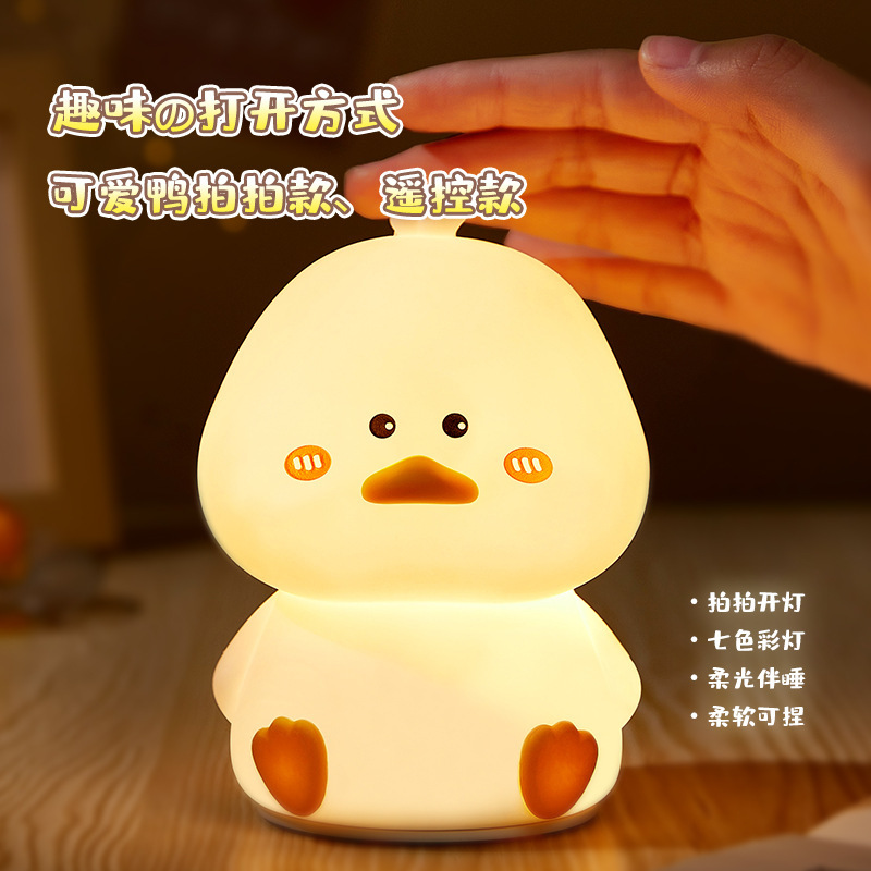 귀여운 만화 작은 오리 실리콘 박수 밤 빛 어린이 침실 침실 수면 고급 분위기 램프 선물