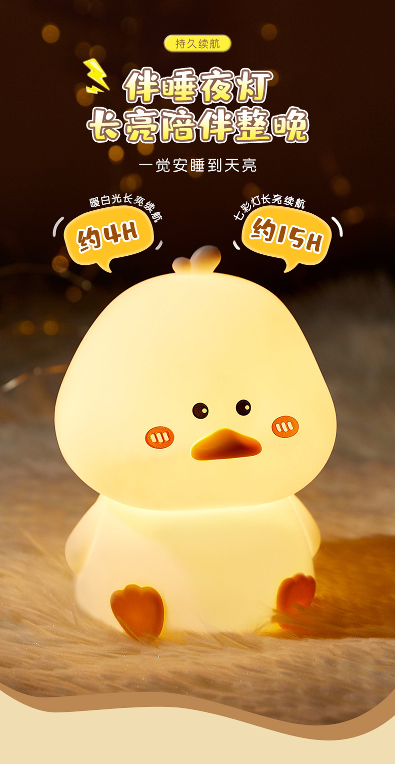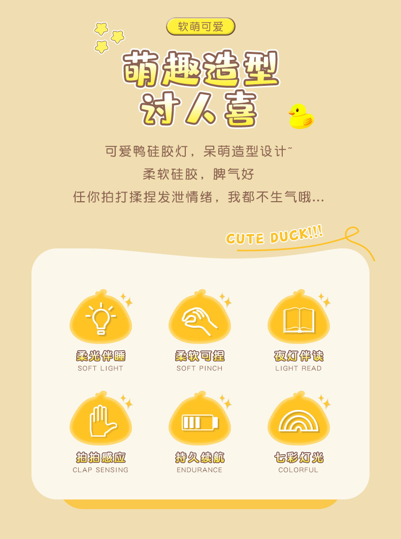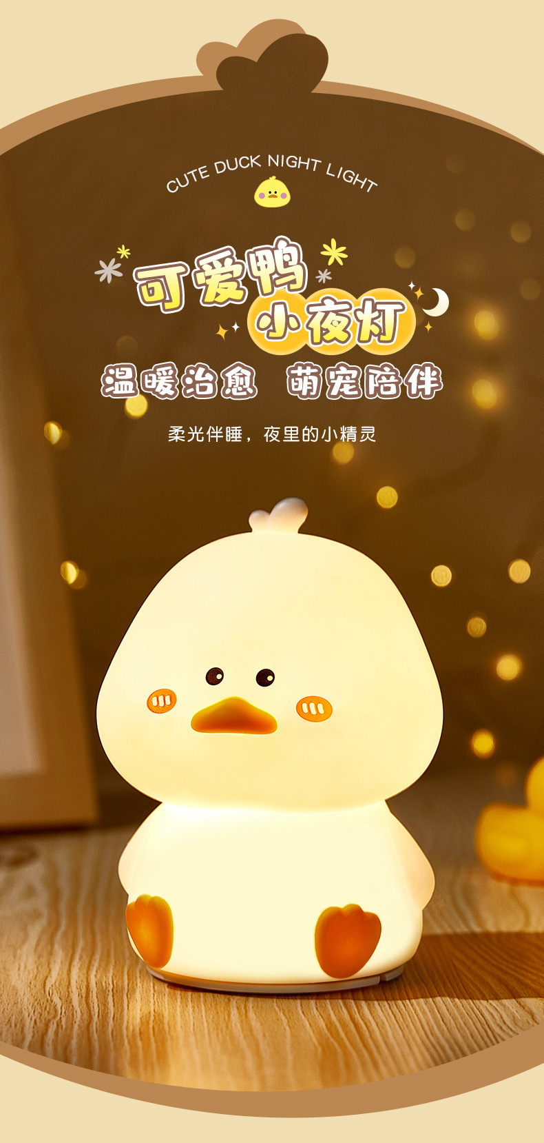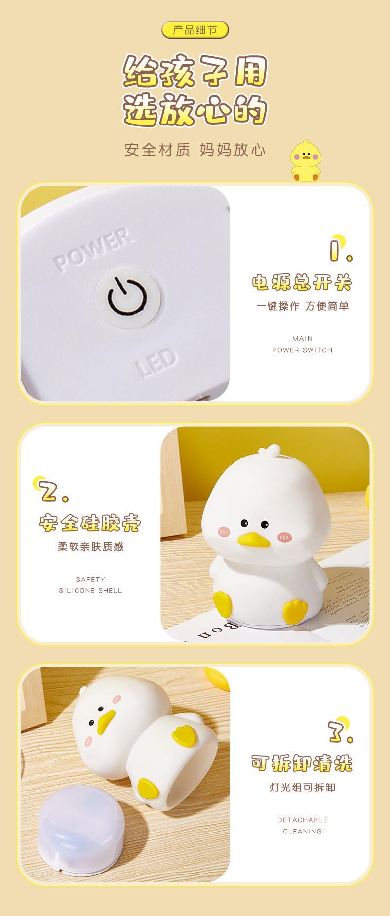 귀여운 만화 작은 오리 실리콘 박수 밤 빛 어린이 침실 침실 수면 고급 분위기 램프 선물