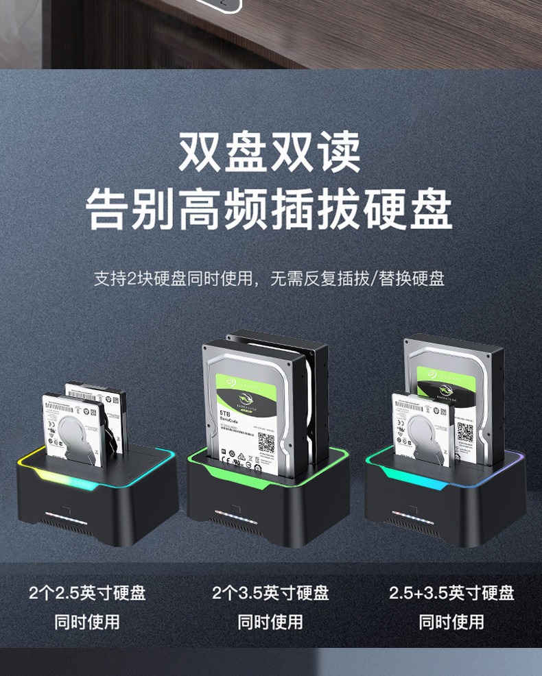 • 듀얼 하드 드라이브 베이스 USB3.0 [RGB 조명 효과]
