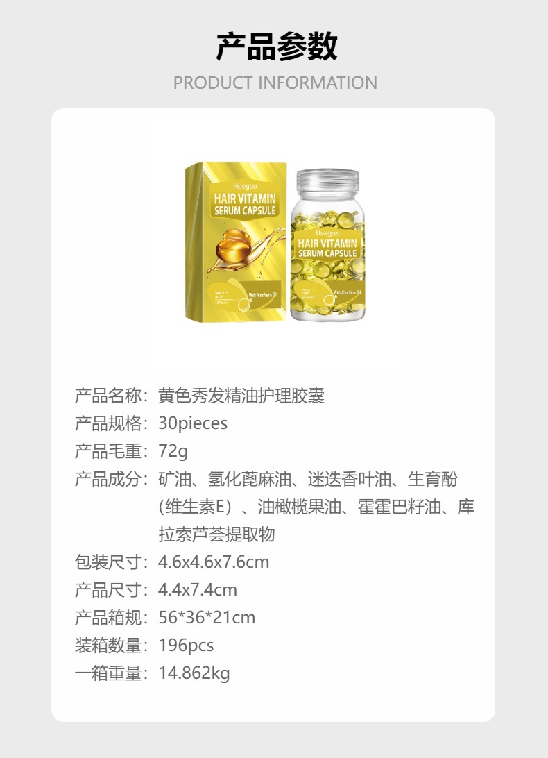 두피 수리를위한 Hoegoa 노란 머리 에센셜 오일 케어 캡슐 부드럽고 빛나는 머리카락 영양