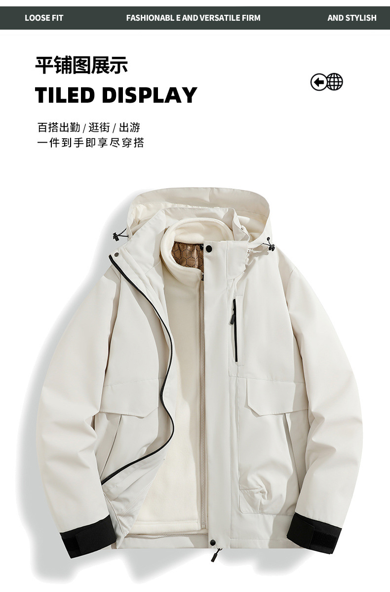 가을과 겨울 3 대 1 충전 코트 컬러 매칭 남성과 여성의 두꺼운 투피스 탈착식 도구 방풍 코트 남성용스토어 가기