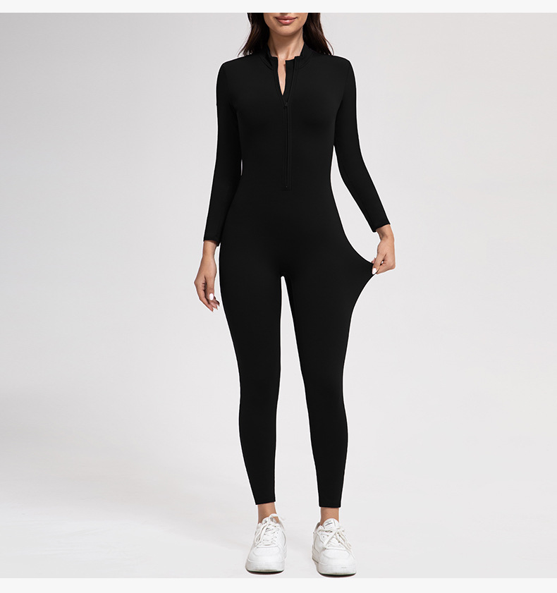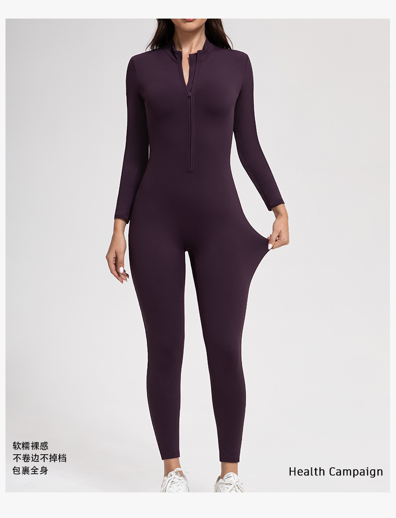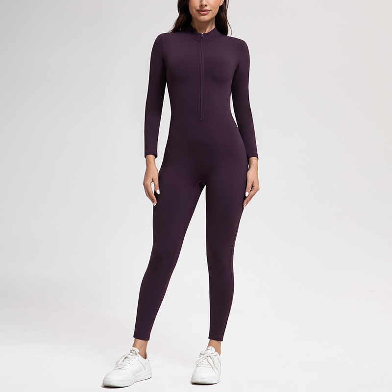 국경 간 야외 지퍼 기모 요가 점프 수트 고강도 스포츠 알몸 꽉 조이는 따뜻한 점프 수트