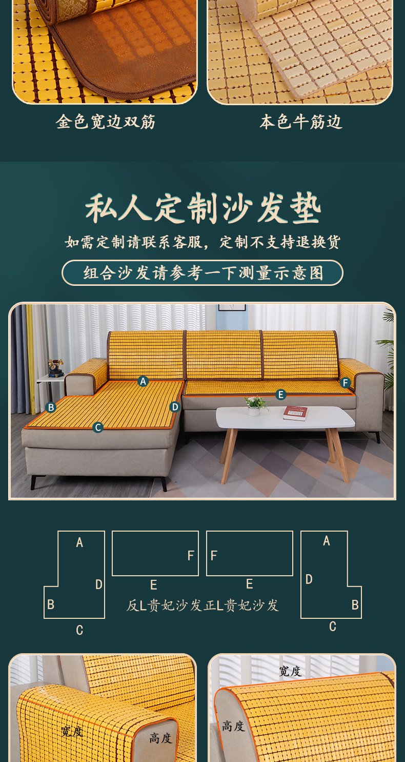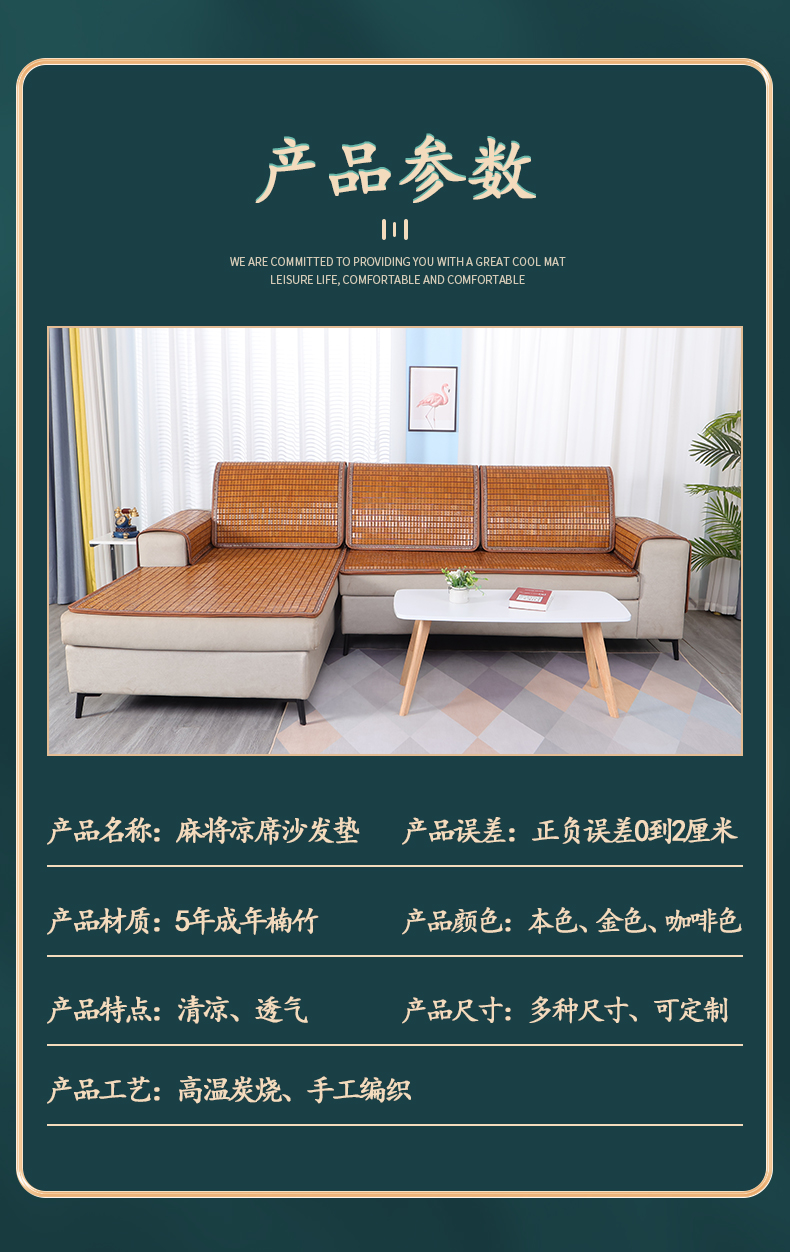 여름 마작 매트 소파 쿠션 거실 마호가니 소파 통기성 미끄럼 방지 쿠션 시원한 쿠션 여름 의자 쿠션 대나무 킹 골드