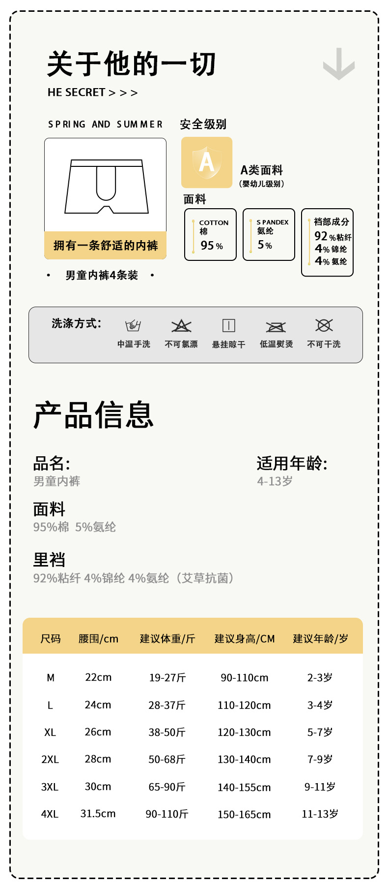 남학생 'No Butt Bacteriostatic 속옷 퓨어 코튼 복서 남성 아기의 4 개 코너 없음 엉덩이 박테리아 성 작은 소년 반바지스토어 가기