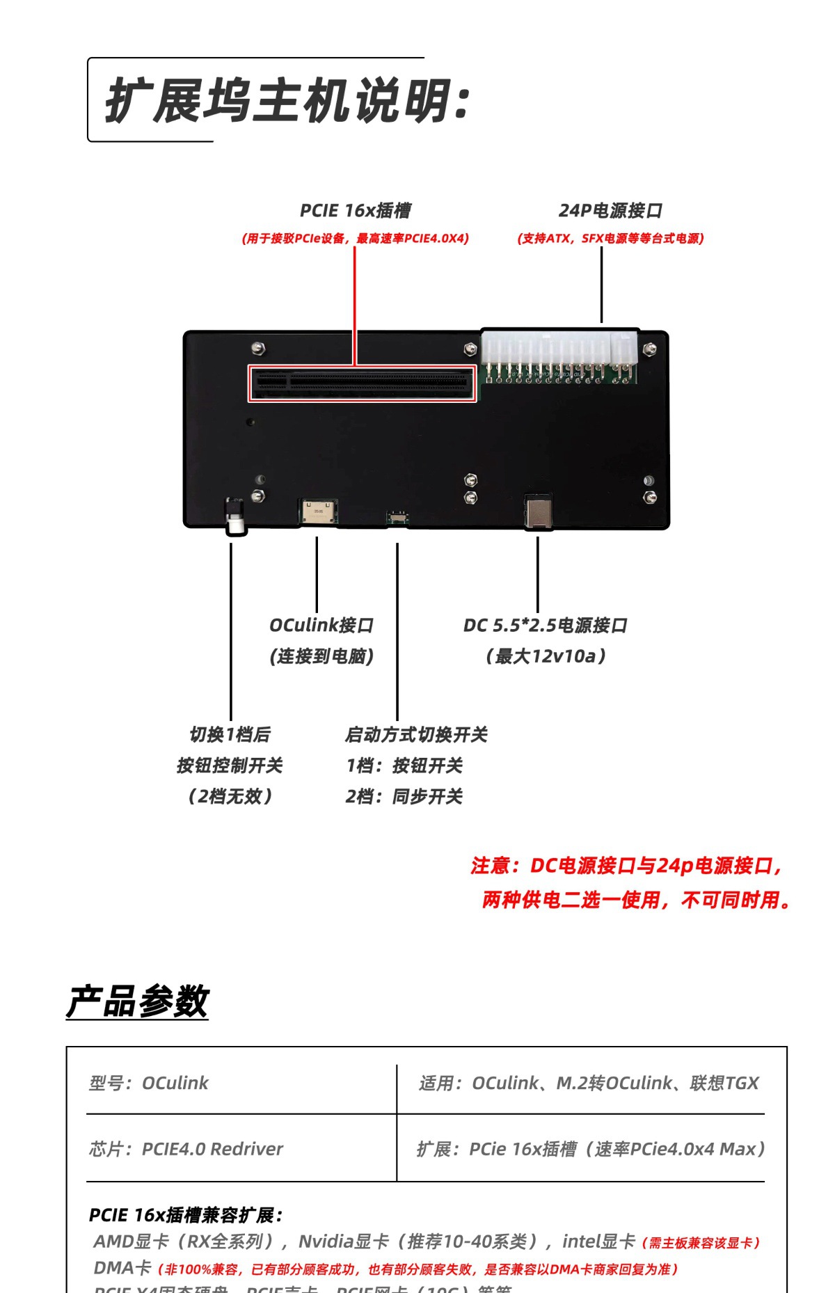 • OCuLink 도킹 스테이션 + 55CM 데이터 케이블 + ATX 브래킷