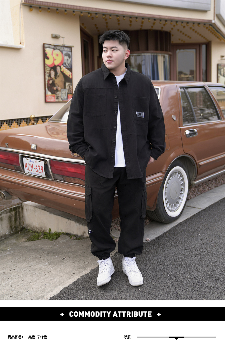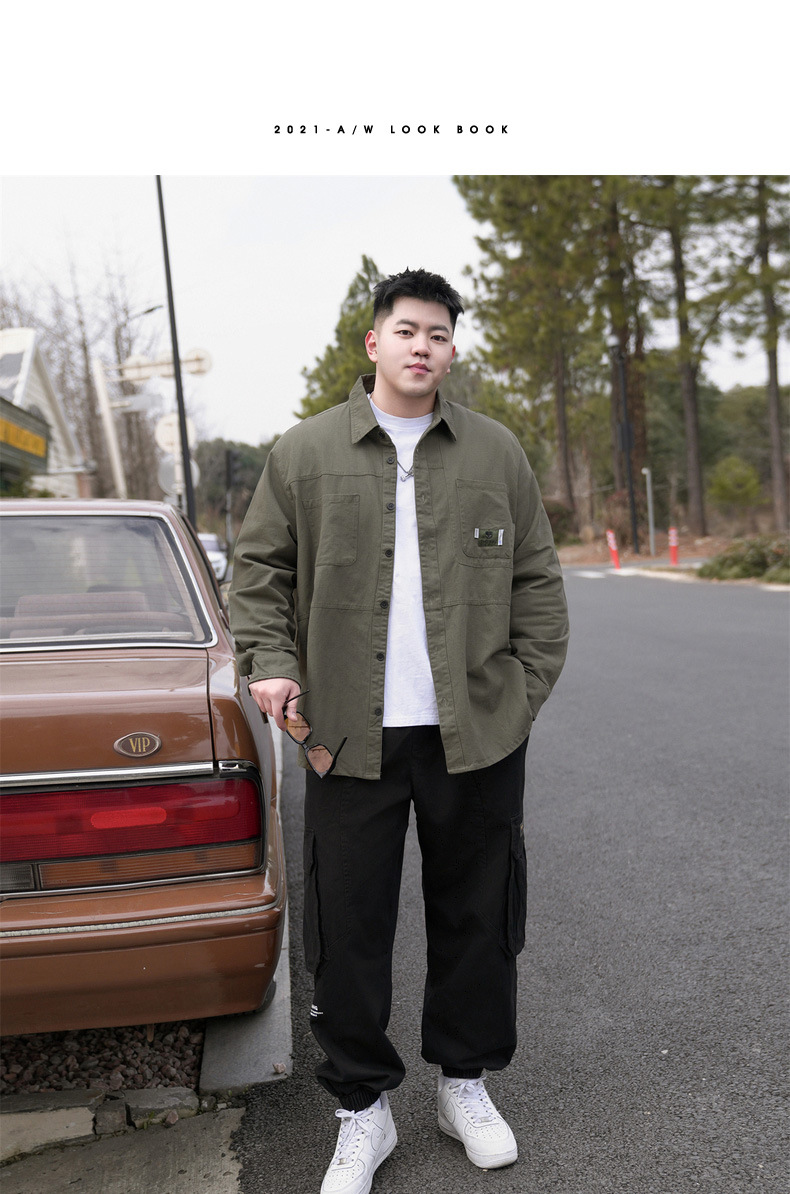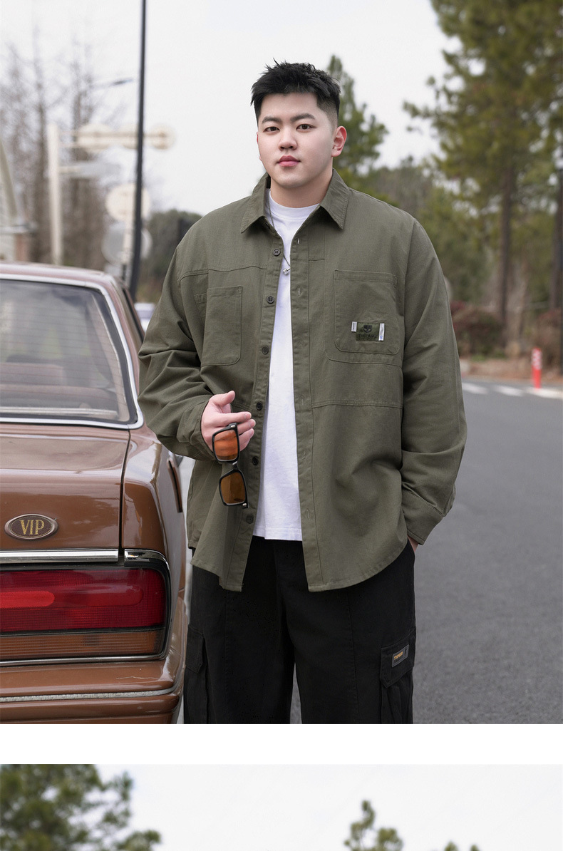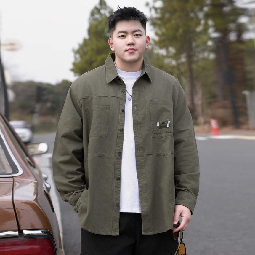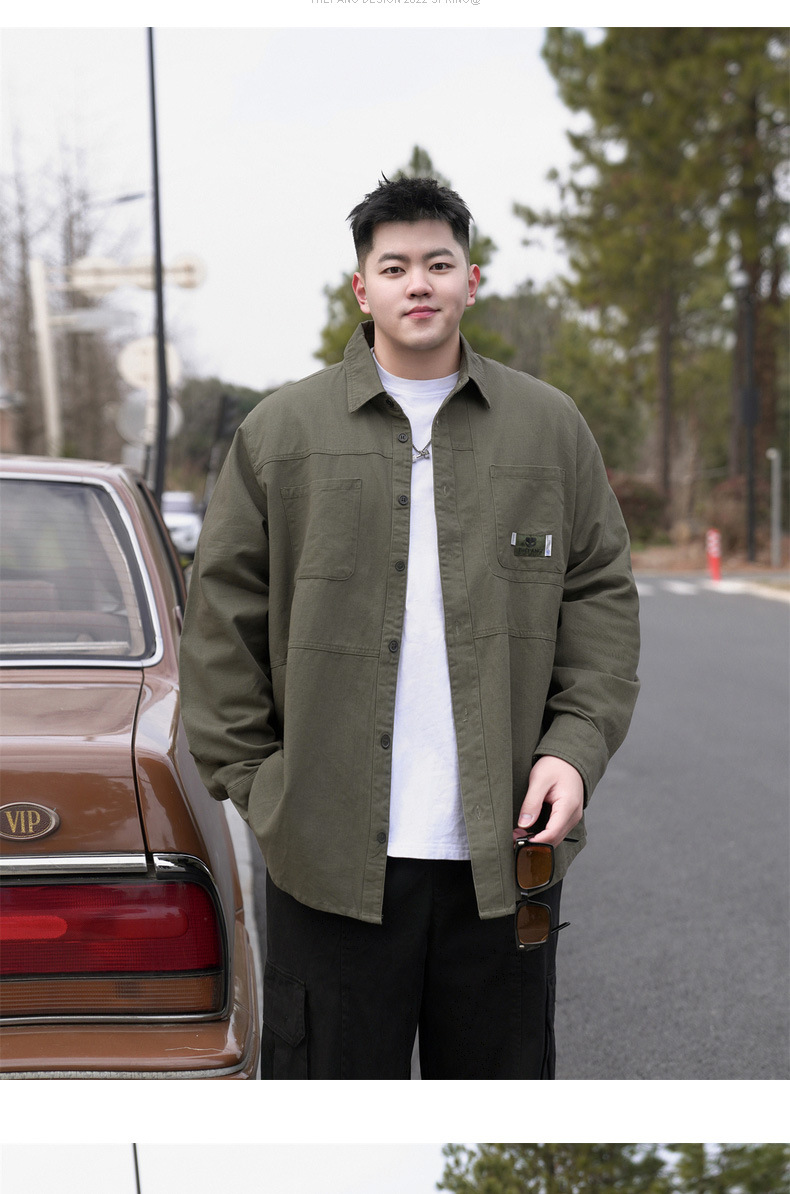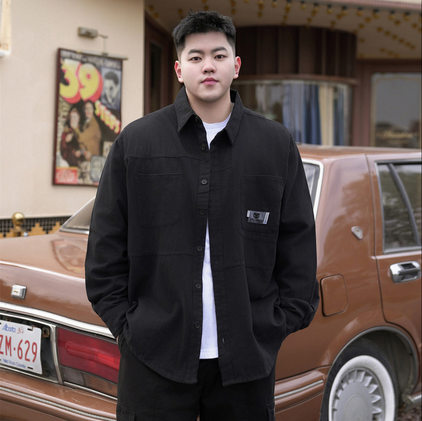 트렌디 브랜드 플러스 사이즈 남성용 지방 남성용 느슨한 캐주얼 긴팔 셔츠 봄과 가을 플러스 사이즈 옷깃 남성용 재킷