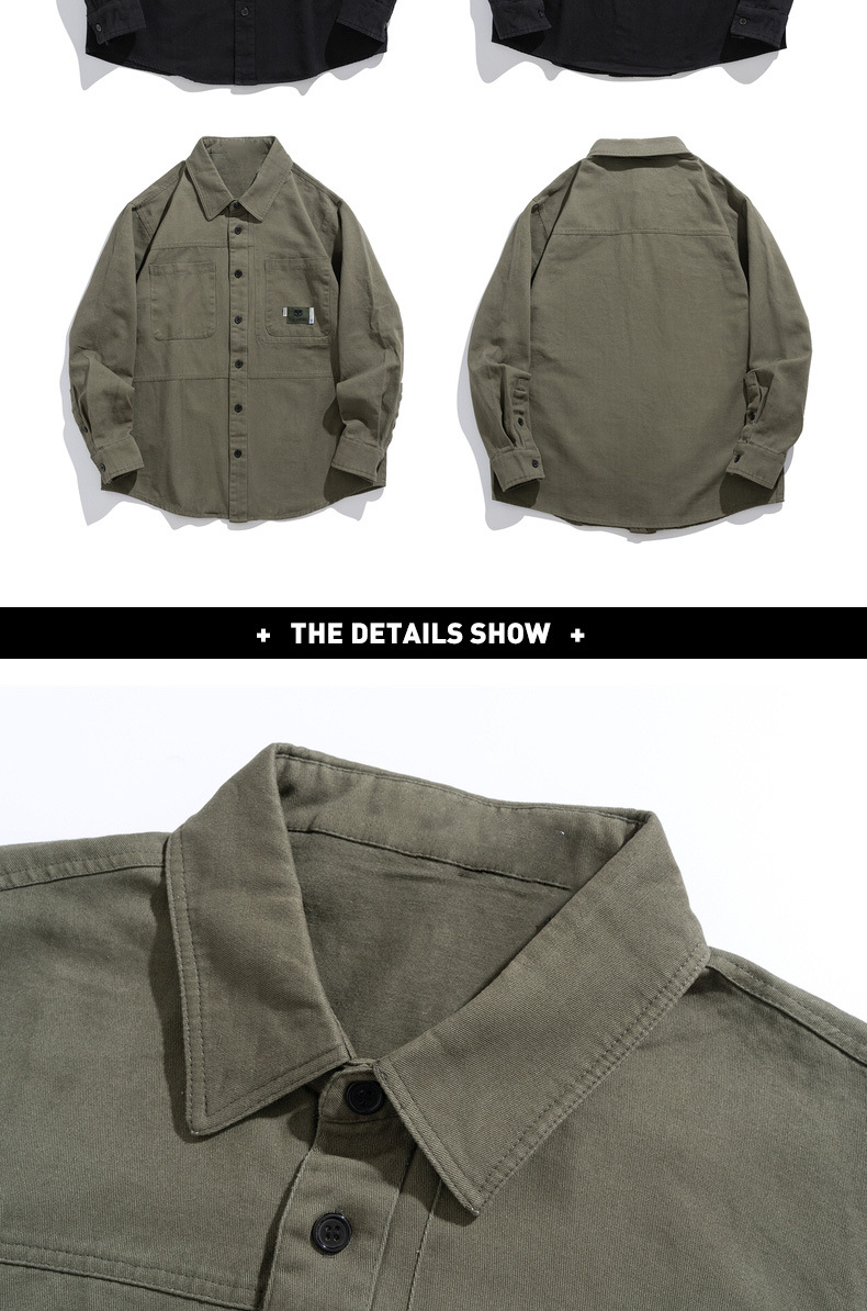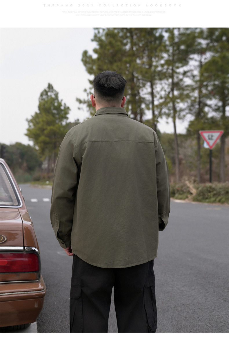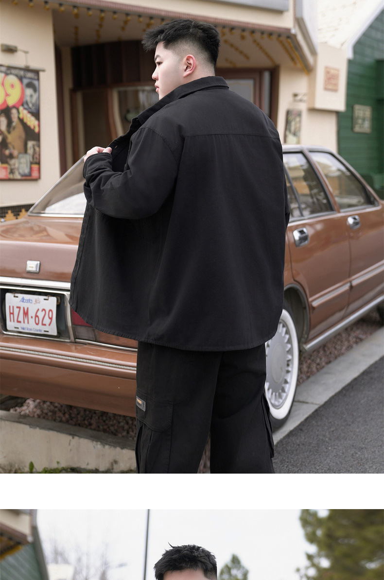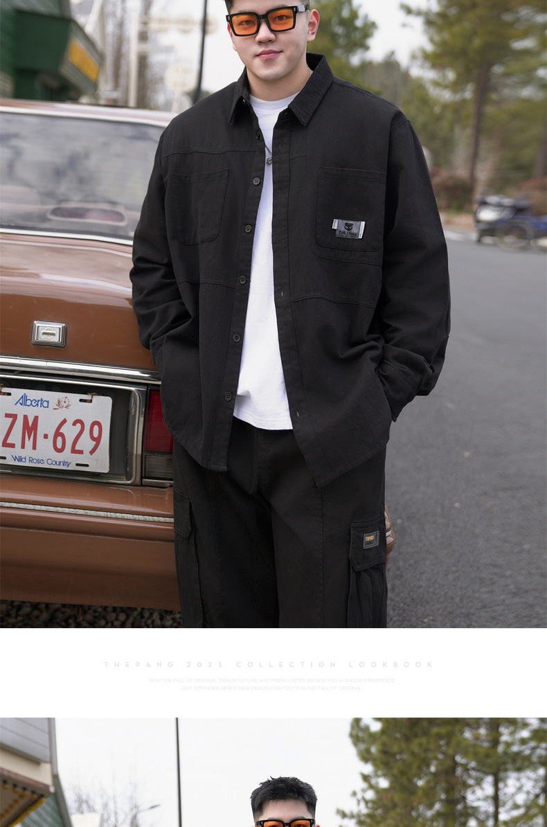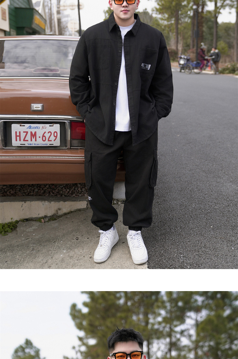 트렌디 브랜드 플러스 사이즈 남성용 지방 남성용 느슨한 캐주얼 긴팔 셔츠 봄과 가을 플러스 사이즈 옷깃 남성용 재킷