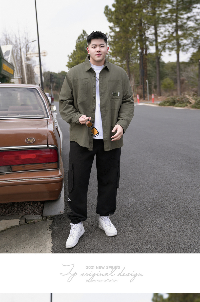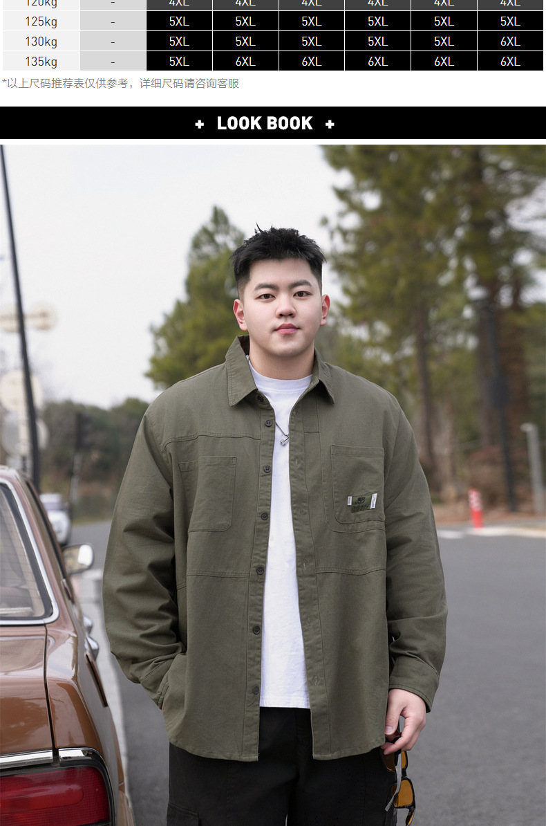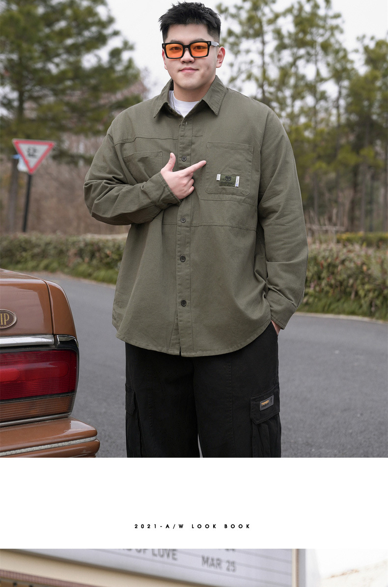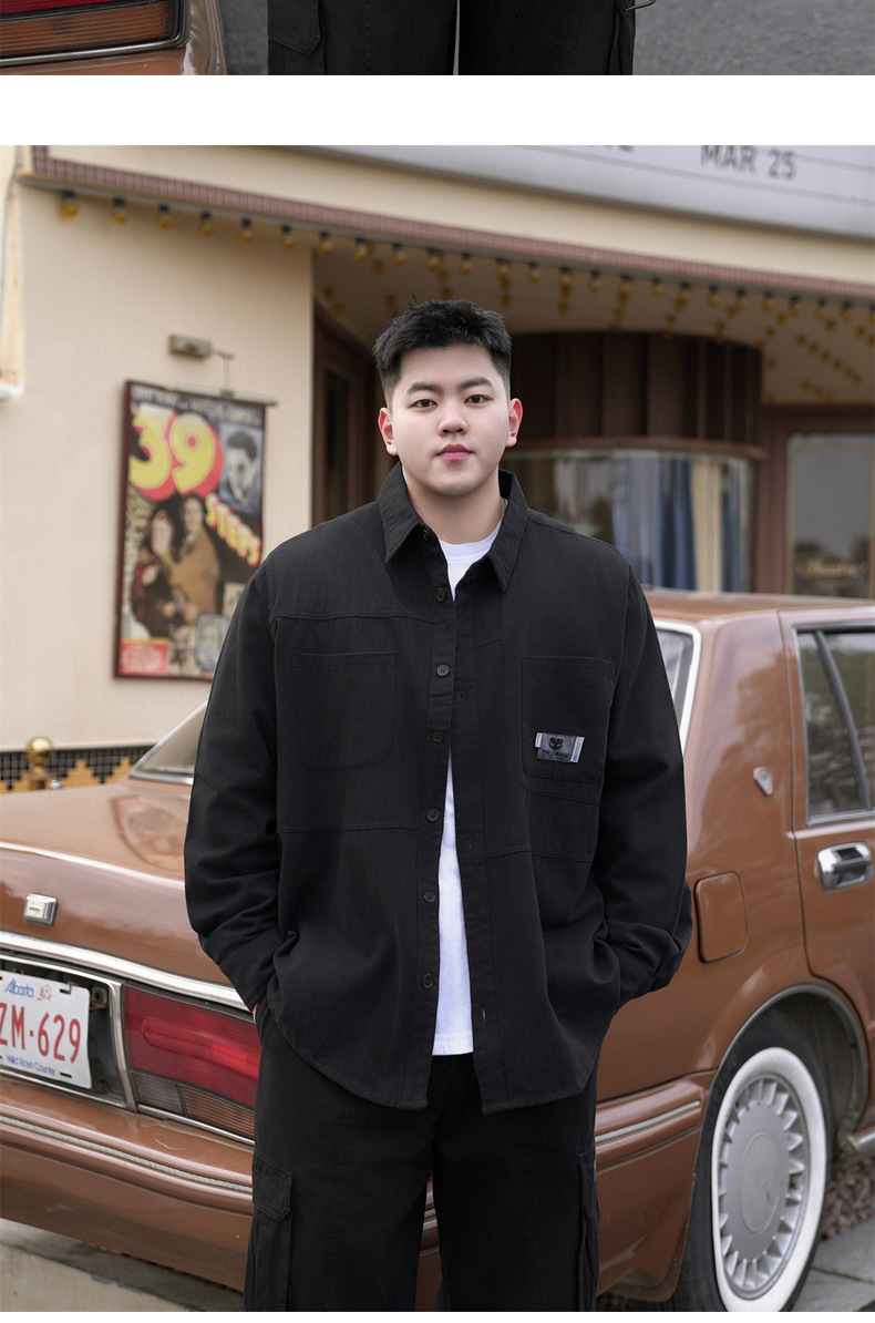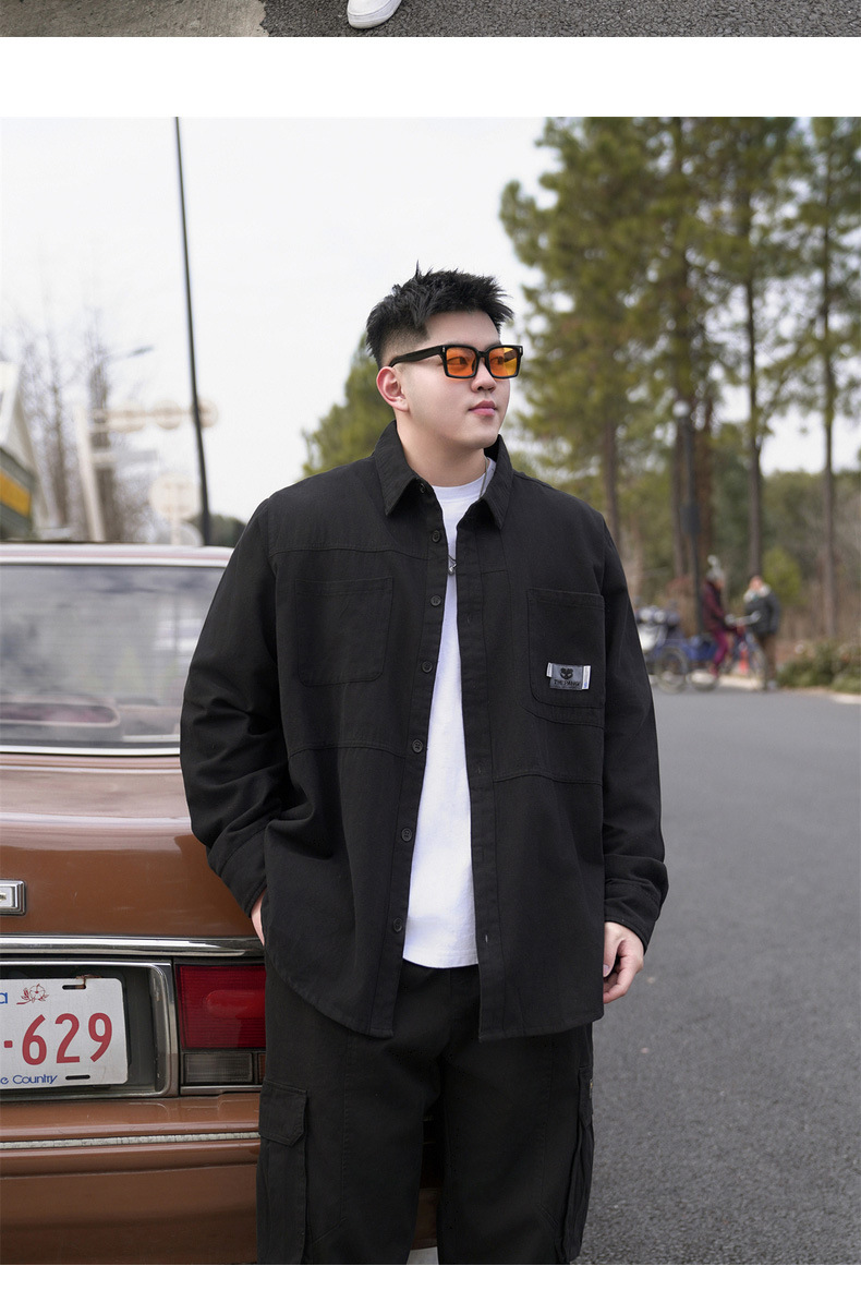 트렌디 브랜드 플러스 사이즈 남성용 지방 남성용 느슨한 캐주얼 긴팔 셔츠 봄과 가을 플러스 사이즈 옷깃 남성용 재킷스토어 가기