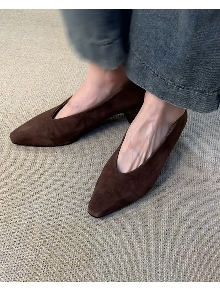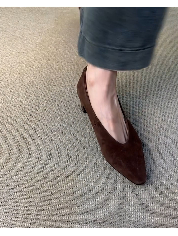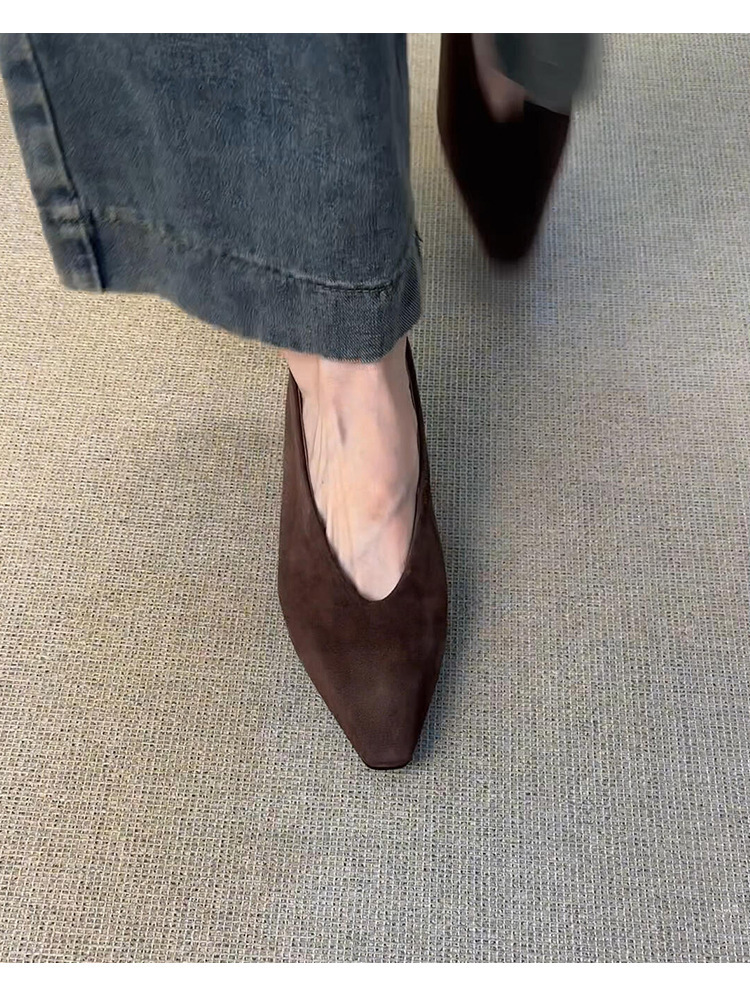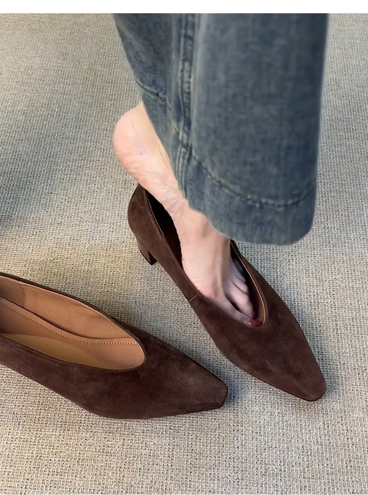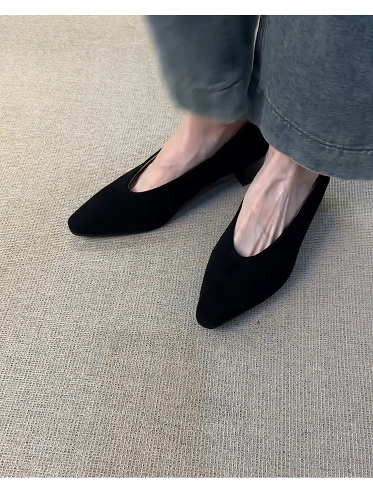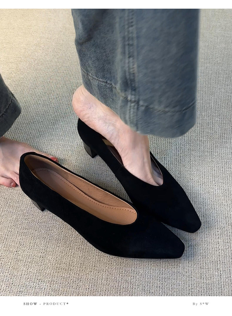 통근 프로스트 가죽 간단한 슬립 온 신발 여성용 프렌치 얕은 입 스퀘어 토트로 두꺼운 힐 밀크 신발스토어 가기