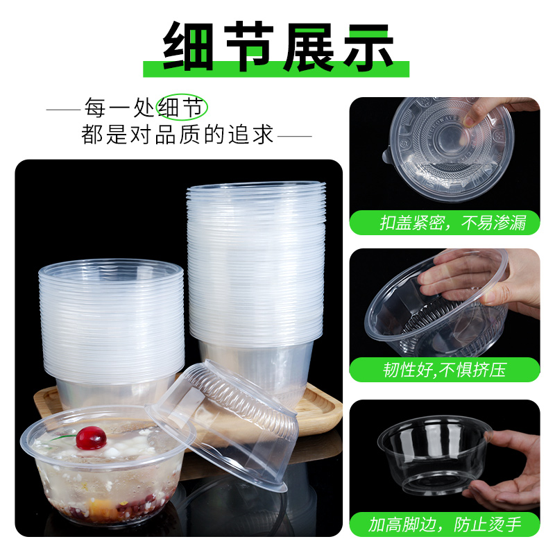 일회용 그릇 포장 식사 상자 플라스틱 가정용 얼음 분말 라운드 작은 수프 그릇 식품 등급 식기 용품 도시락 왕 진