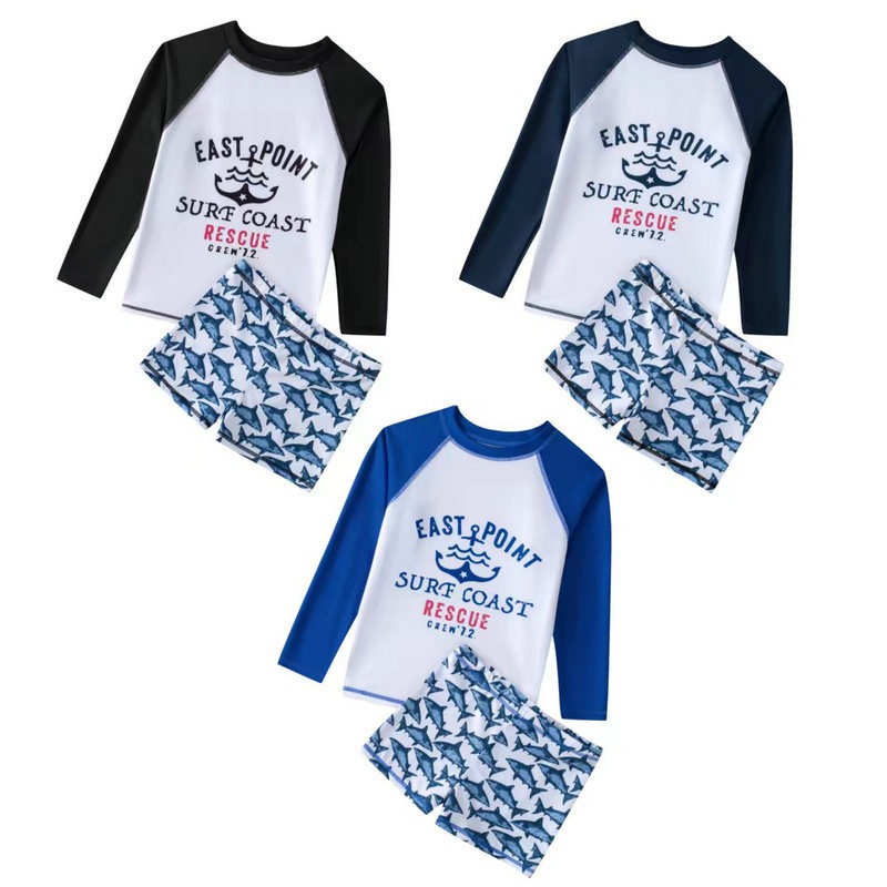 태양 보호 속건성 아기 어린이 작은 상어 수영복 어린이 만화 수영복 세트 인쇄 해변 스플릿 수영복스토어 가기