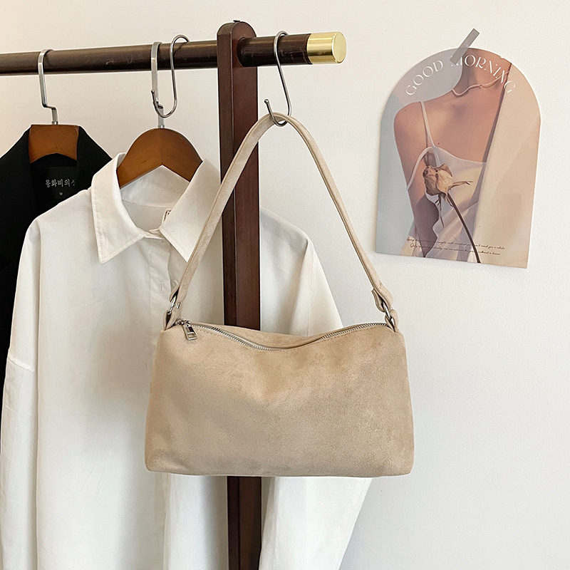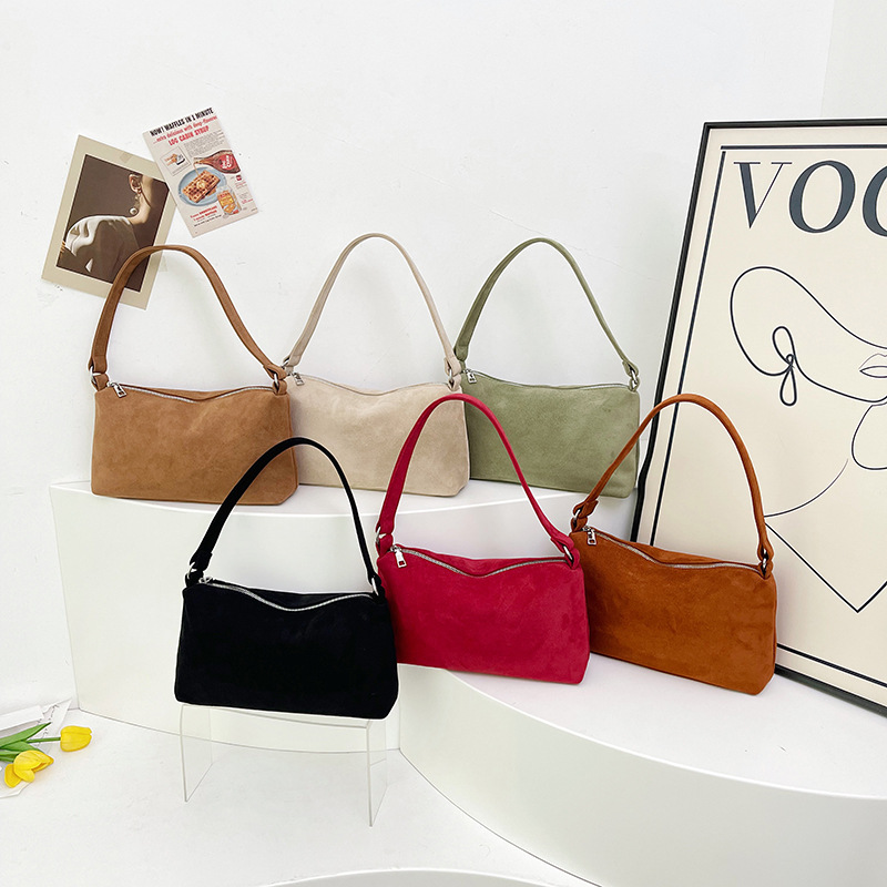 한국 니치 레트로 스웨이드 소프트 숄더 언더암 가방 여성의 2024 가을과 겨울 새로운 간단한 패션 핸드백스토어 가기