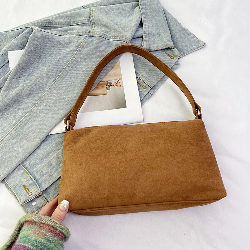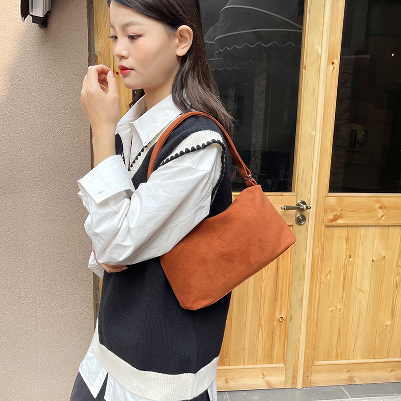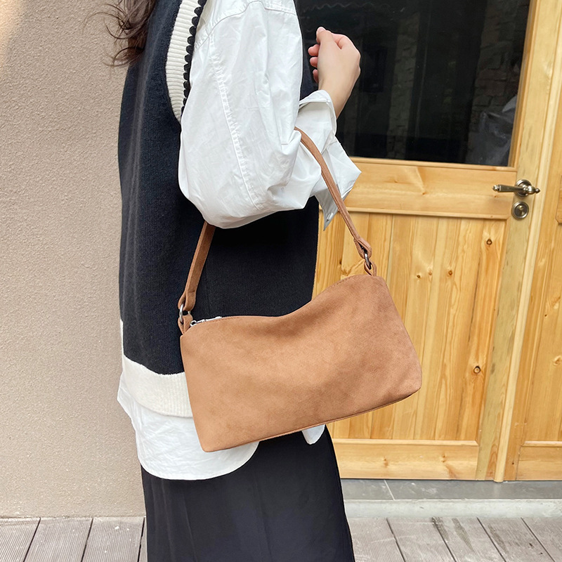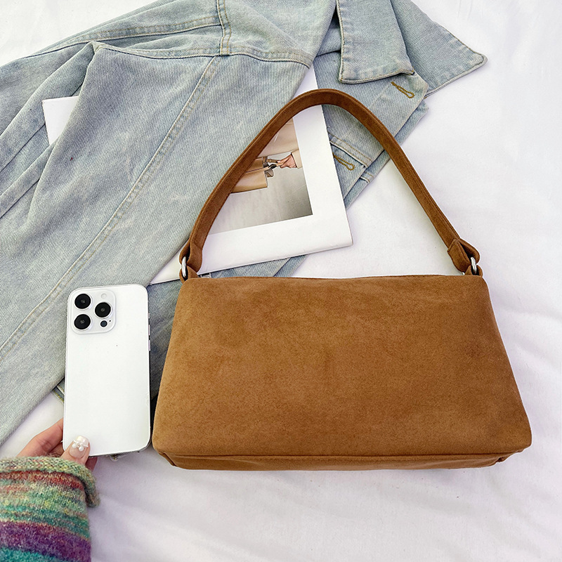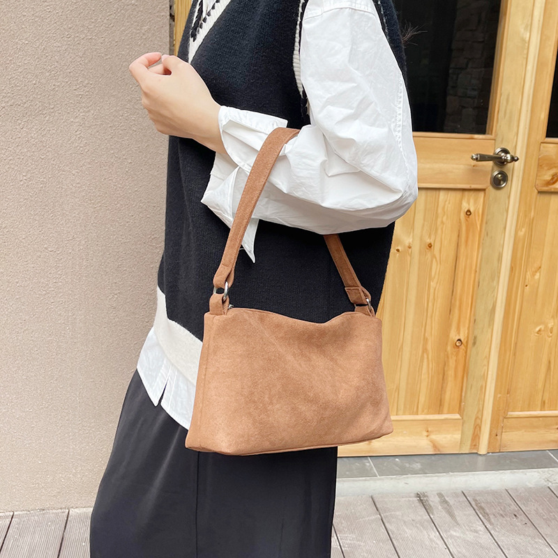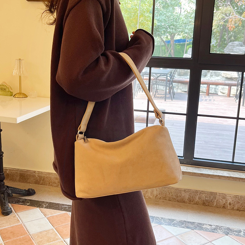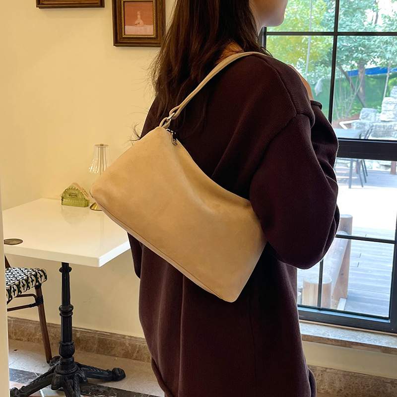 한국 니치 레트로 스웨이드 소프트 숄더 언더암 가방 여성의 2024 가을과 겨울 새로운 간단한 패션 핸드백