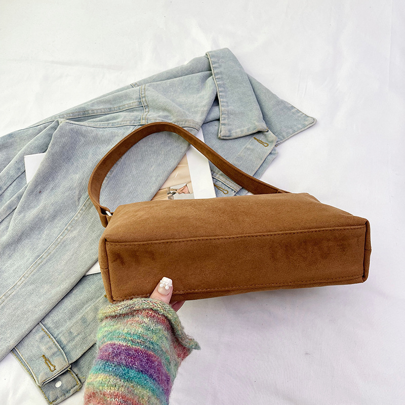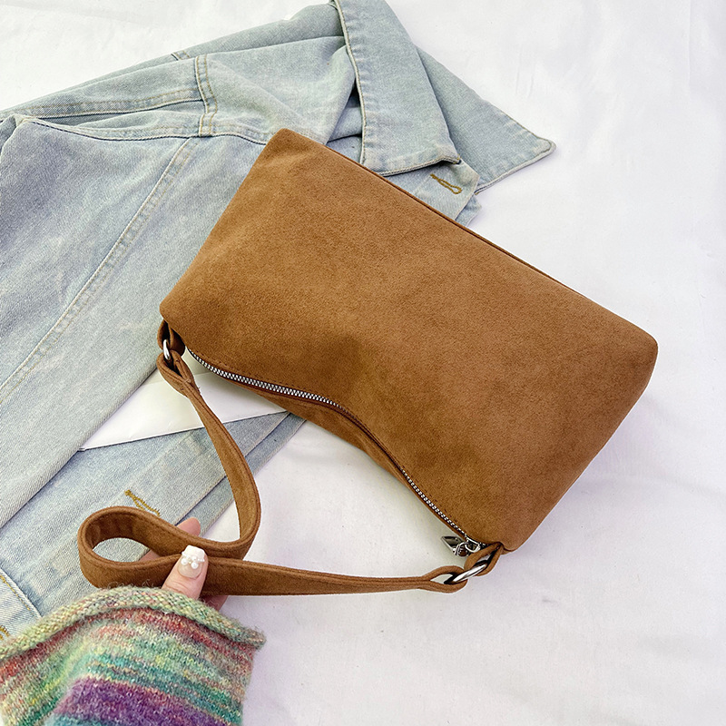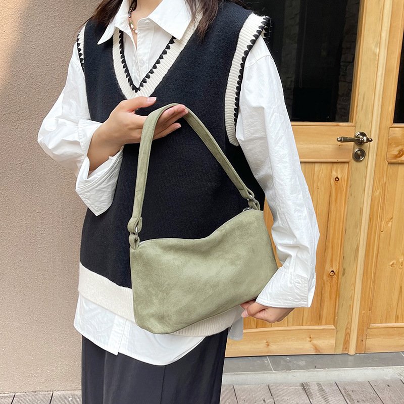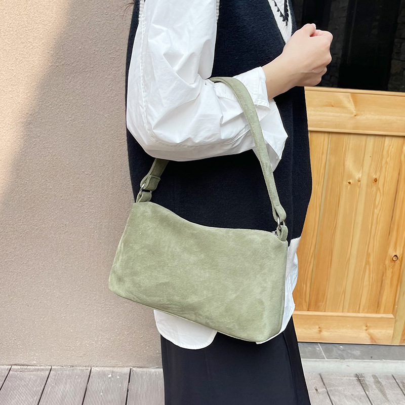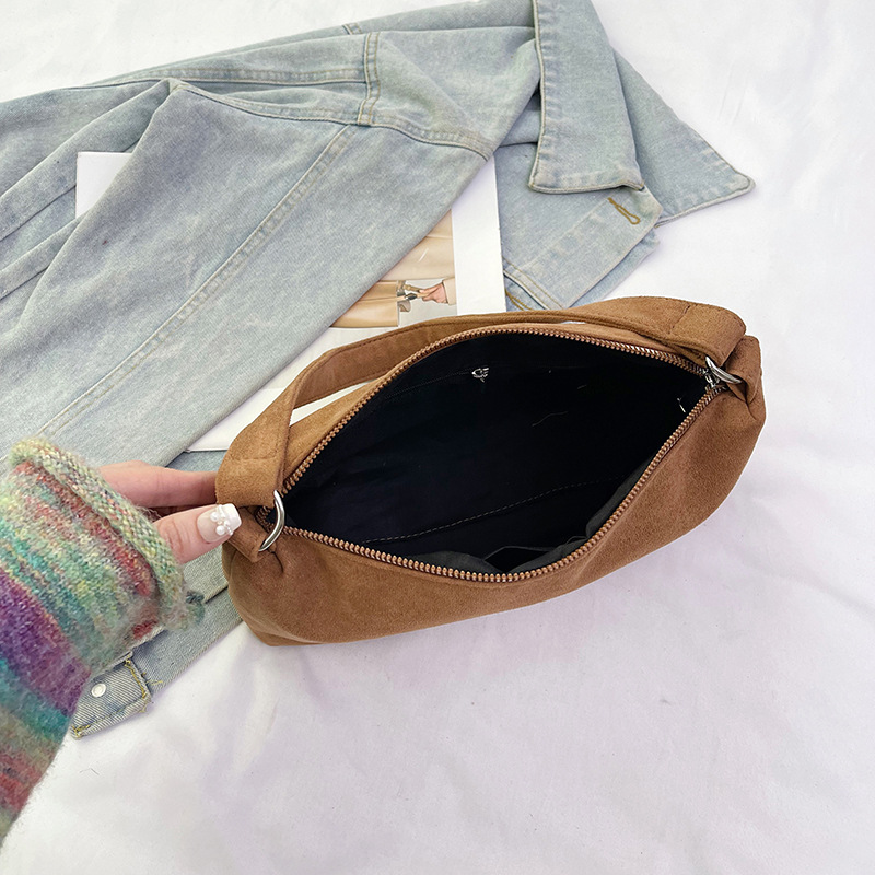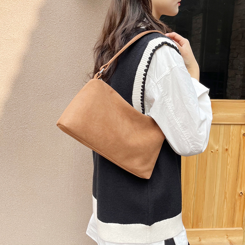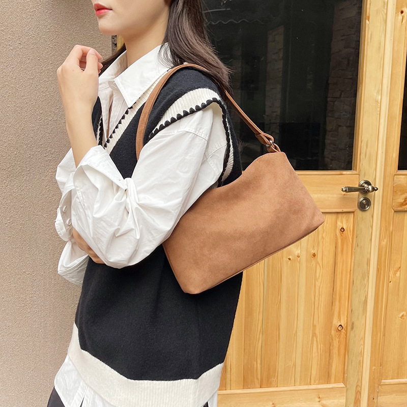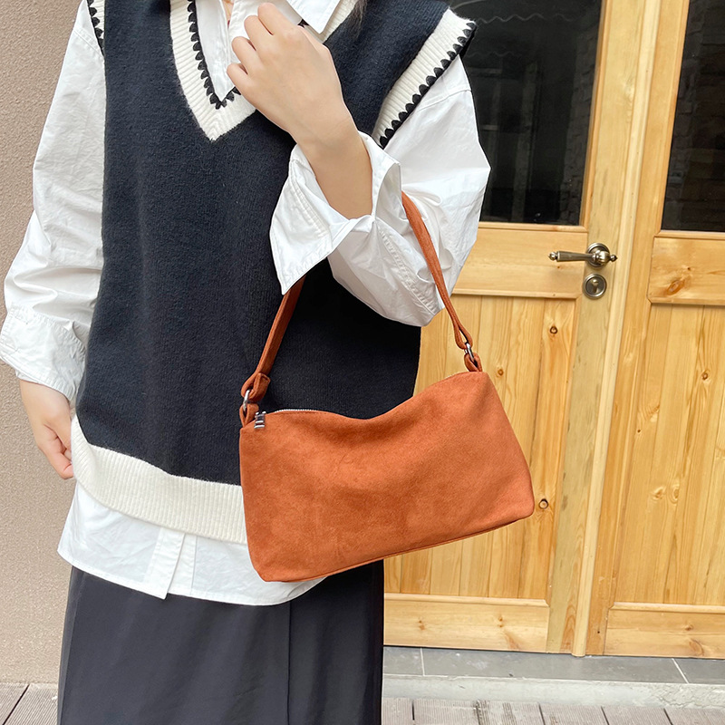 한국 니치 레트로 스웨이드 소프트 숄더 언더암 가방 여성의 2024 가을과 겨울 새로운 간단한 패션 핸드백