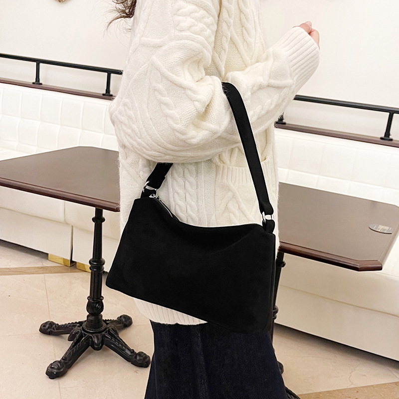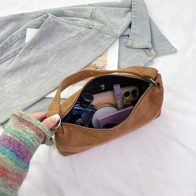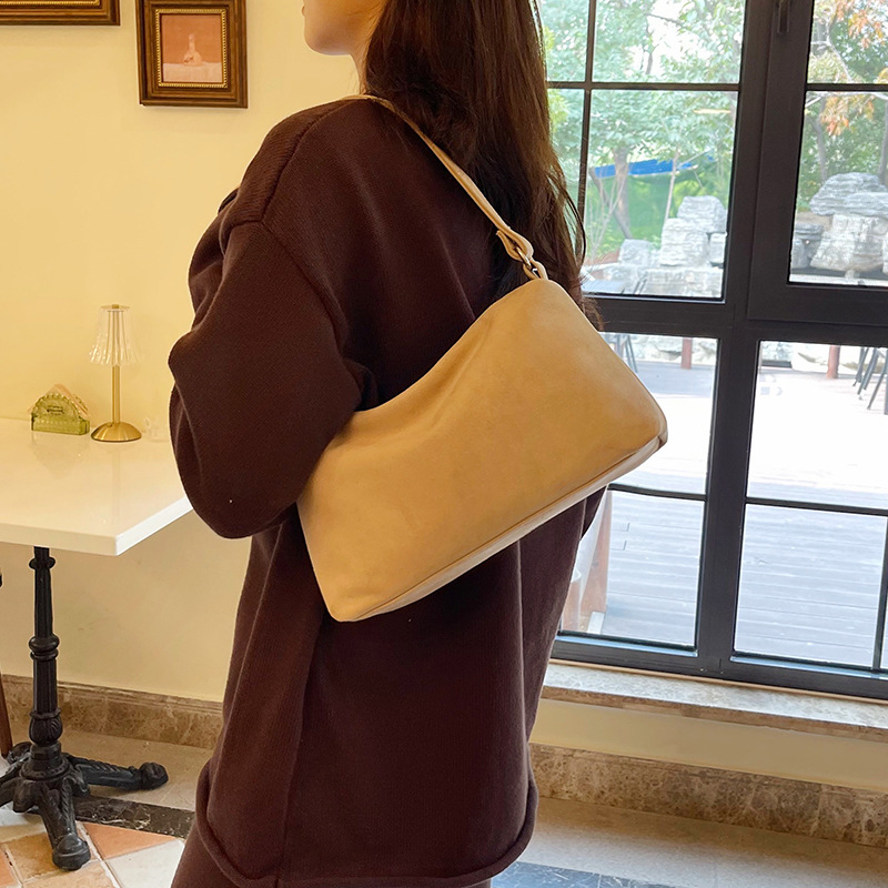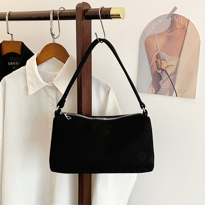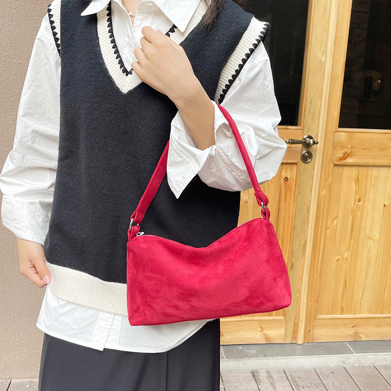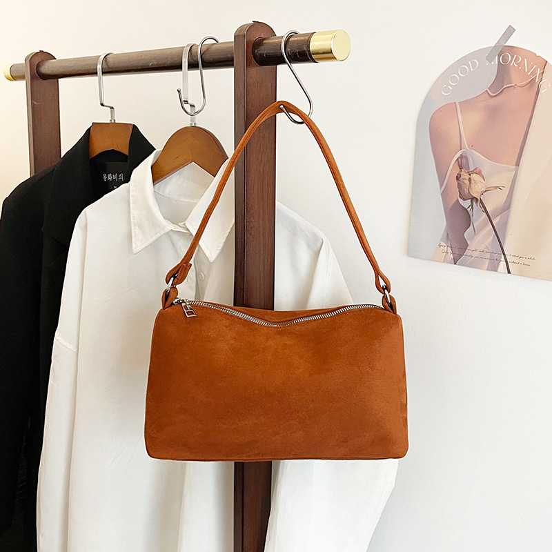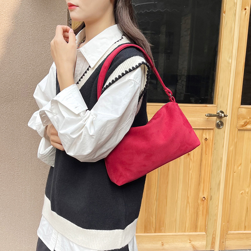 한국 니치 레트로 스웨이드 소프트 숄더 언더암 가방 여성의 2024 가을과 겨울 새로운 간단한 패션 핸드백