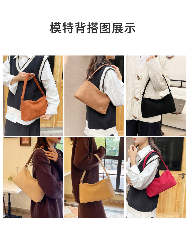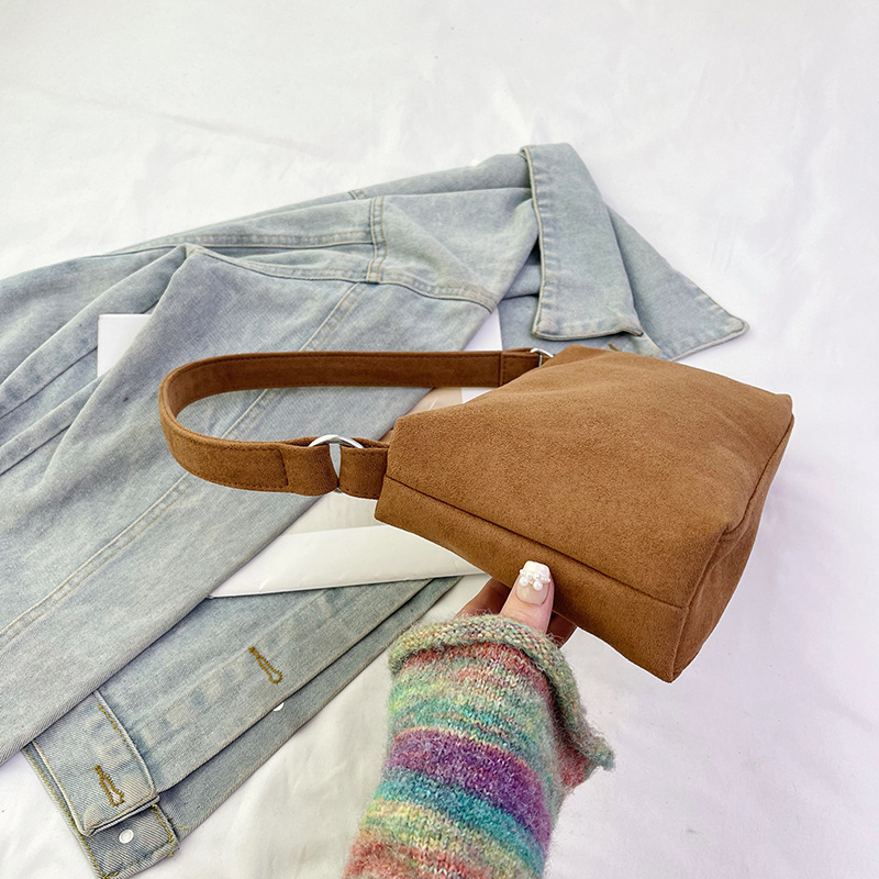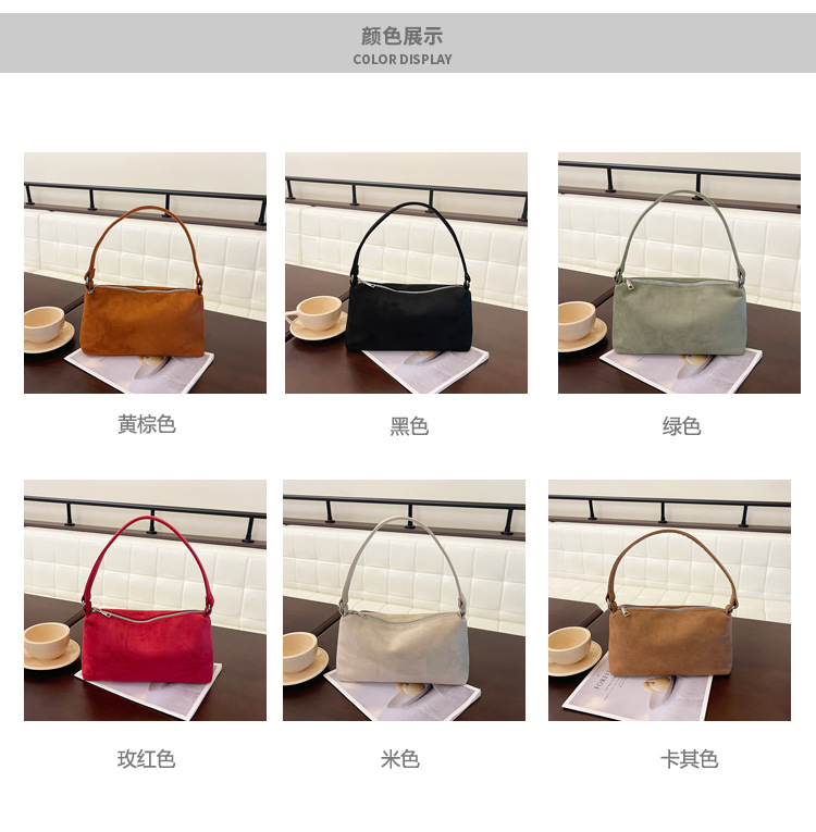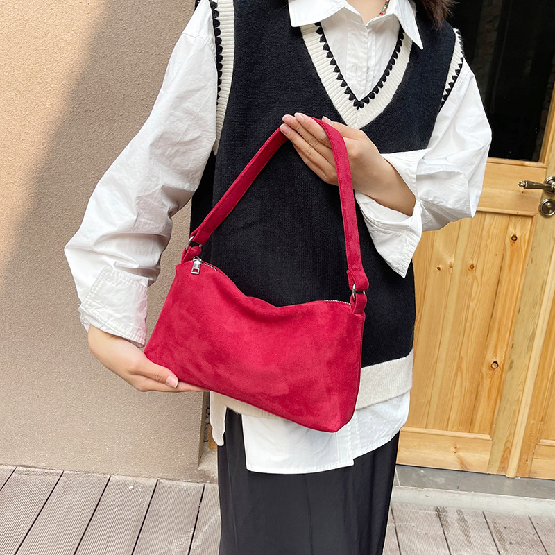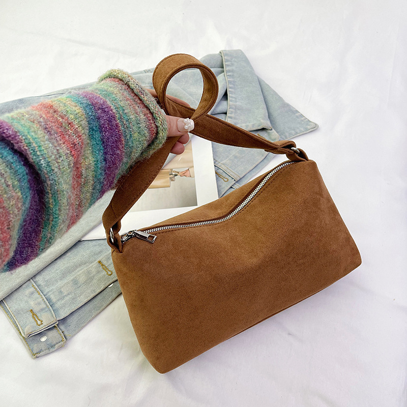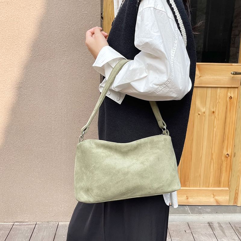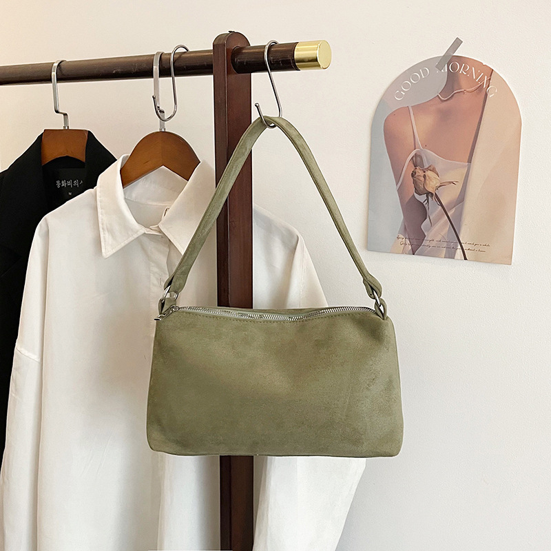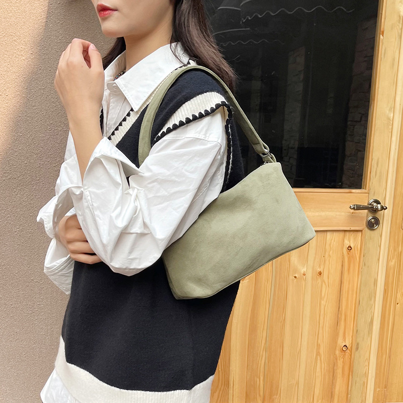 한국 니치 레트로 스웨이드 소프트 숄더 언더암 가방 여성의 2024 가을과 겨울 새로운 간단한 패션 핸드백