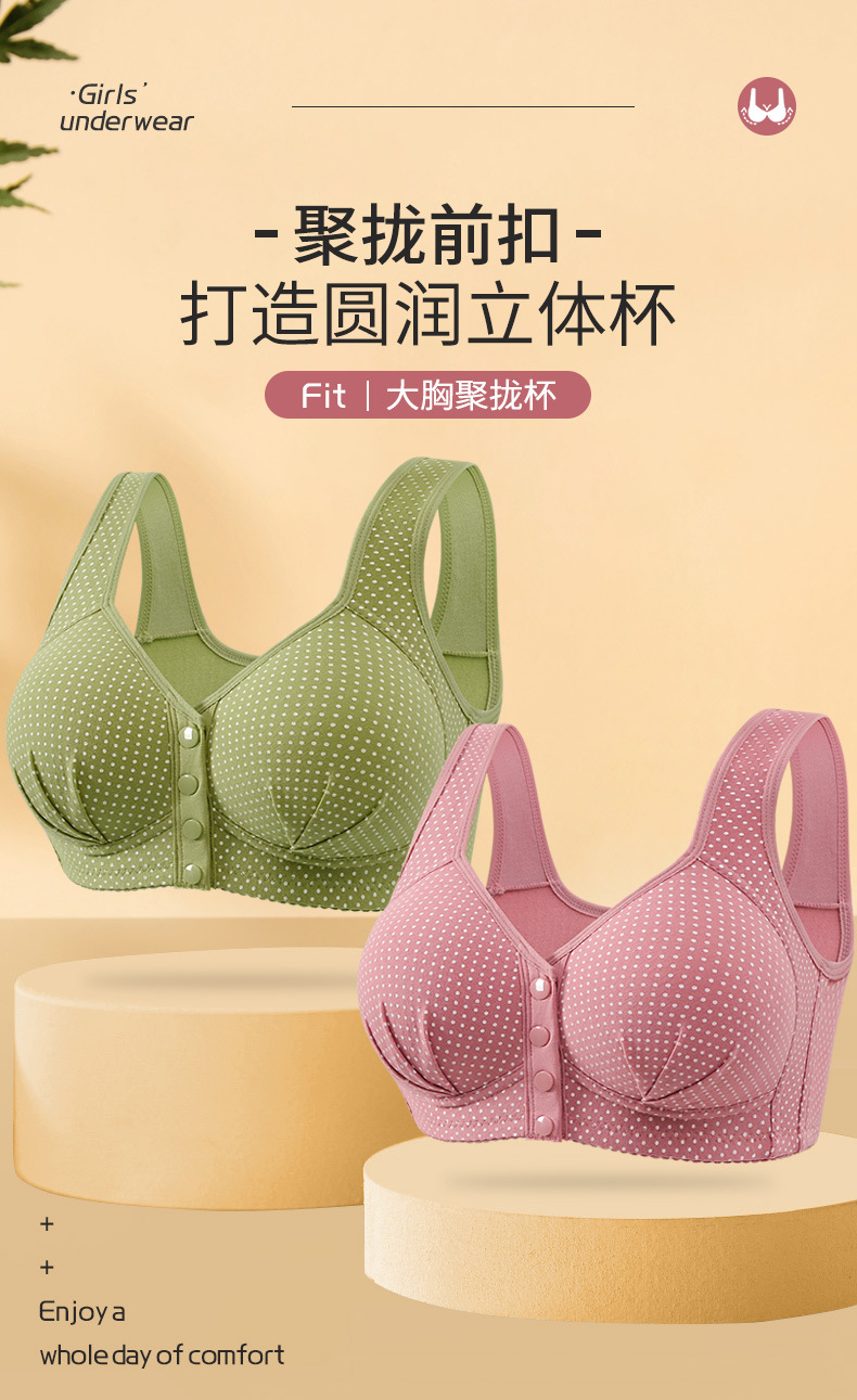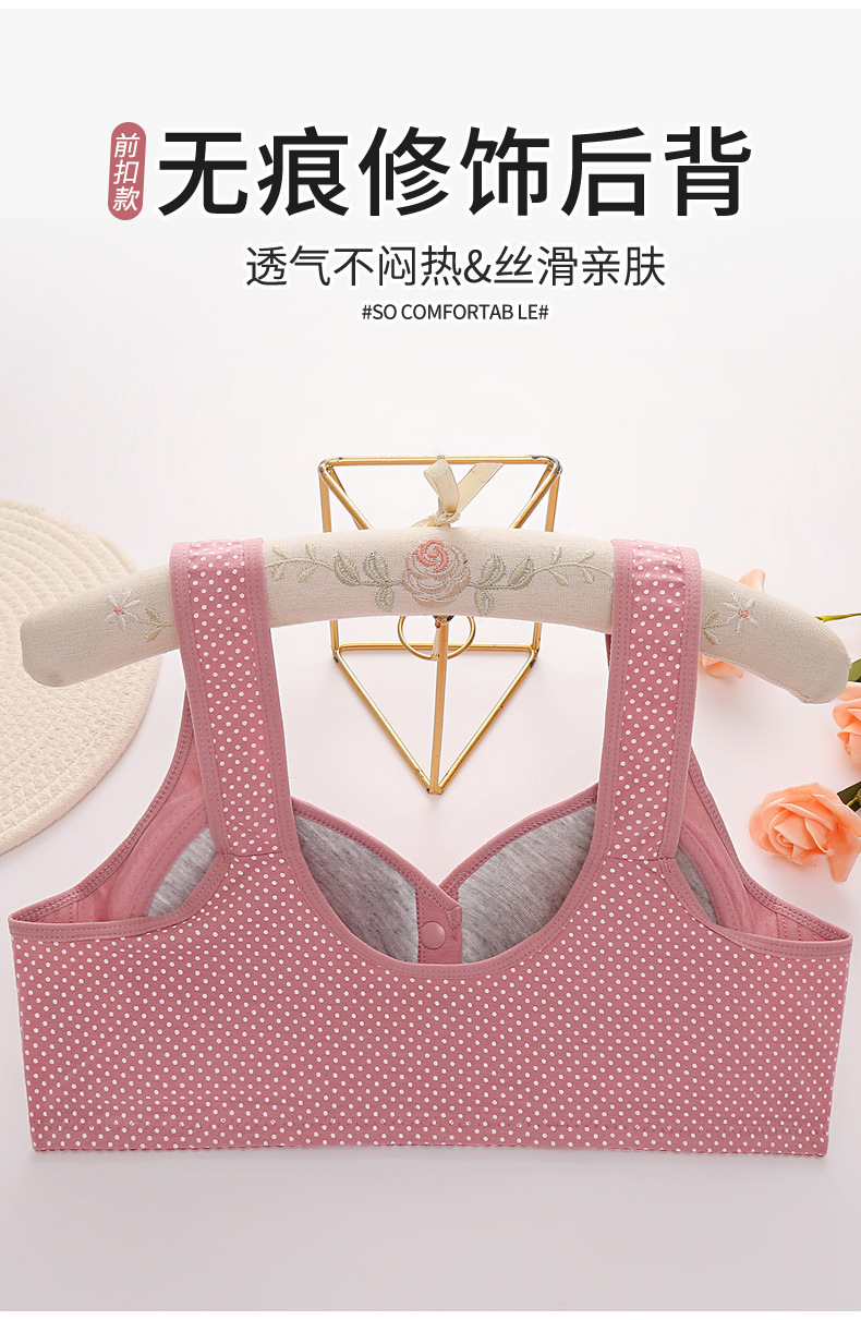 중년 및 노인 앞 버클 코튼 브라 브라 속옷 여성용 스틸 링 스펀지 얇은 통기성 조끼 어머니 플러스 사이즈스토어 가기
