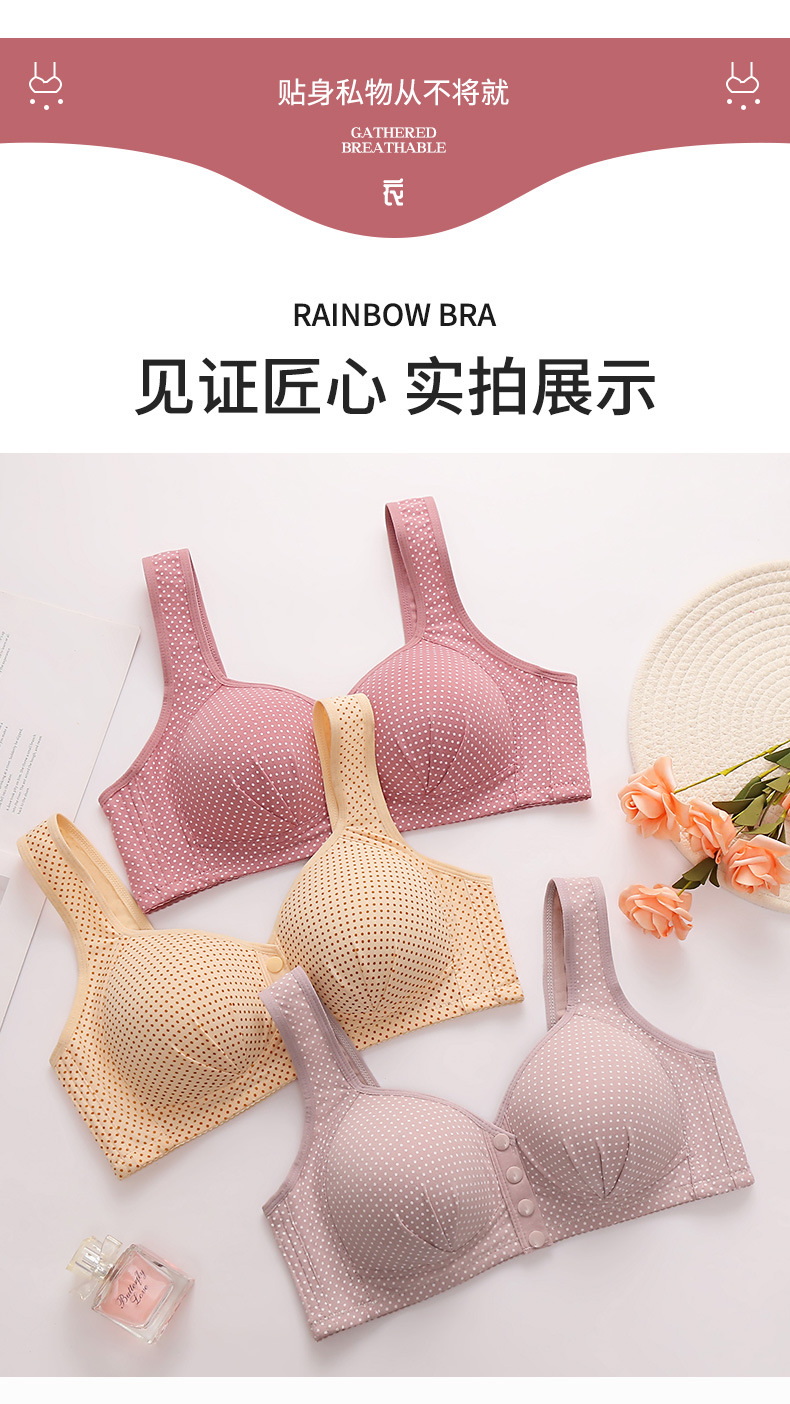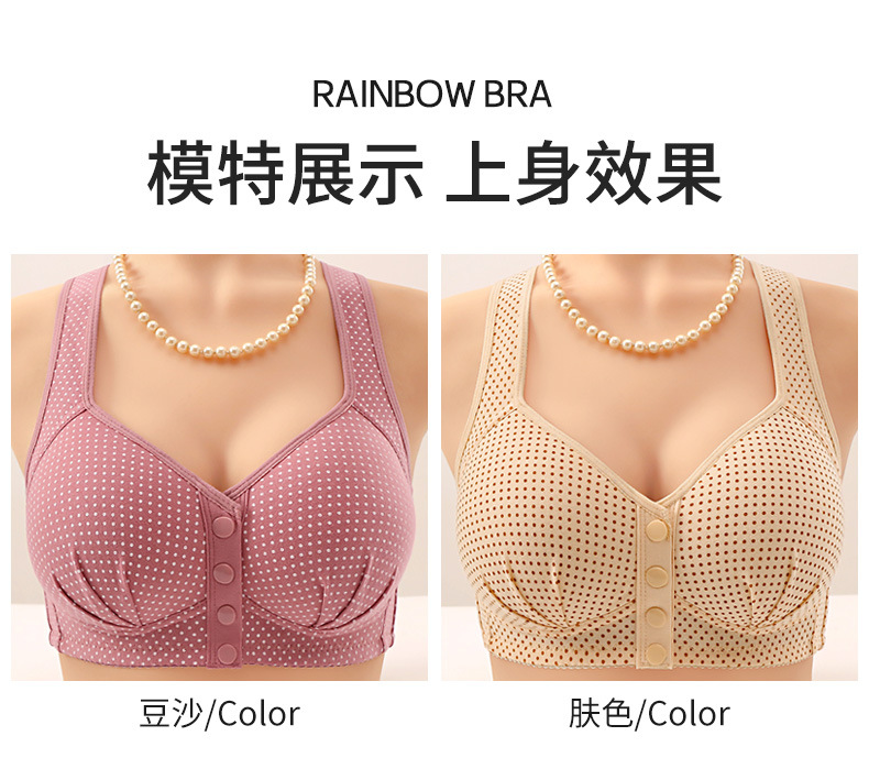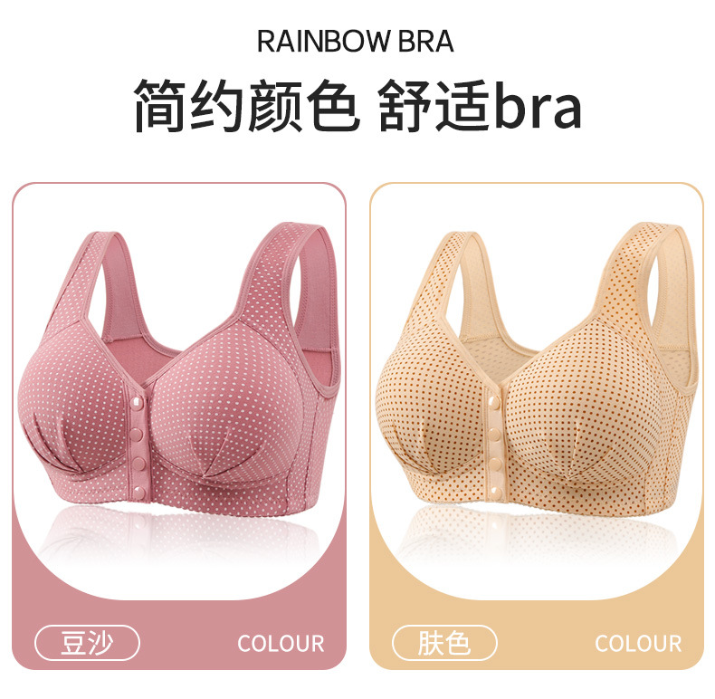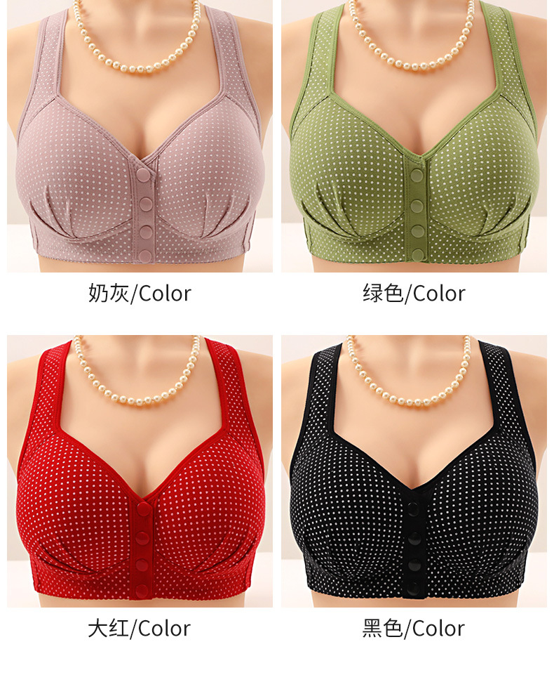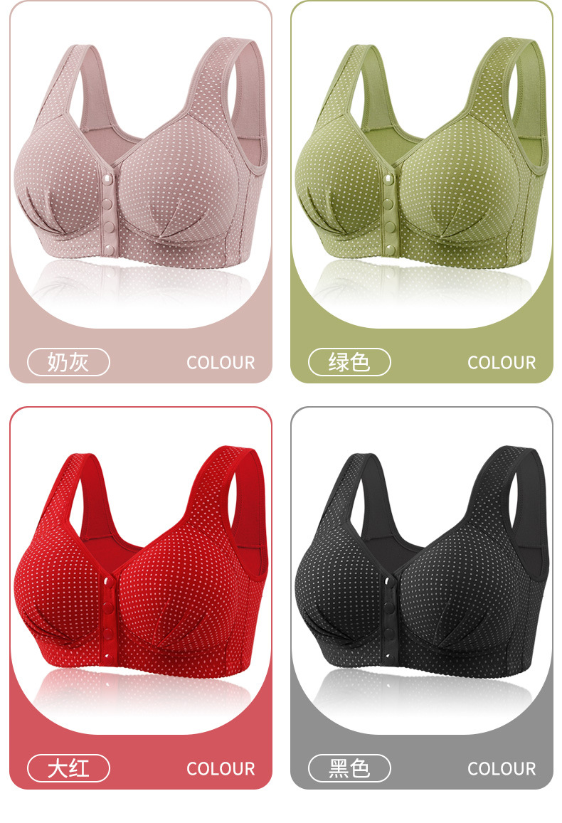 중년 및 노인 앞 버클 코튼 브라 브라 속옷 여성용 스틸 링 스펀지 얇은 통기성 조끼 어머니 플러스 사이즈