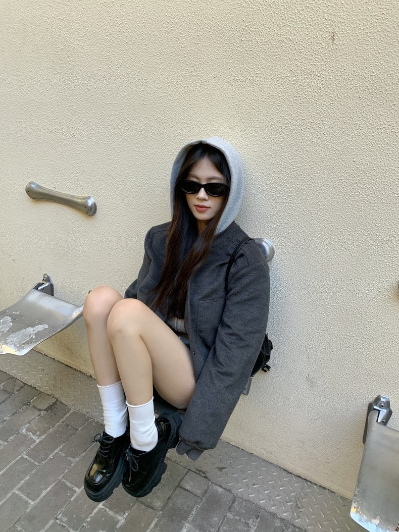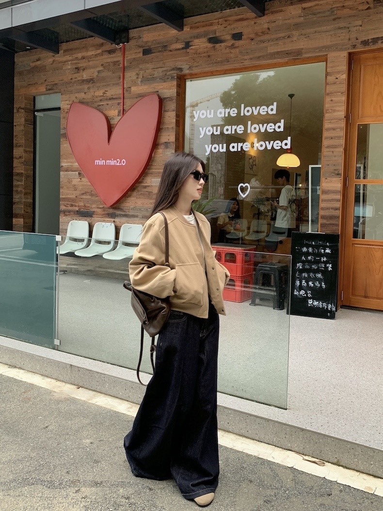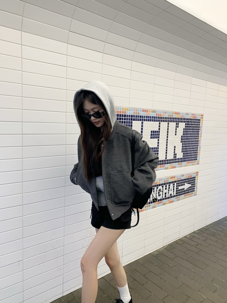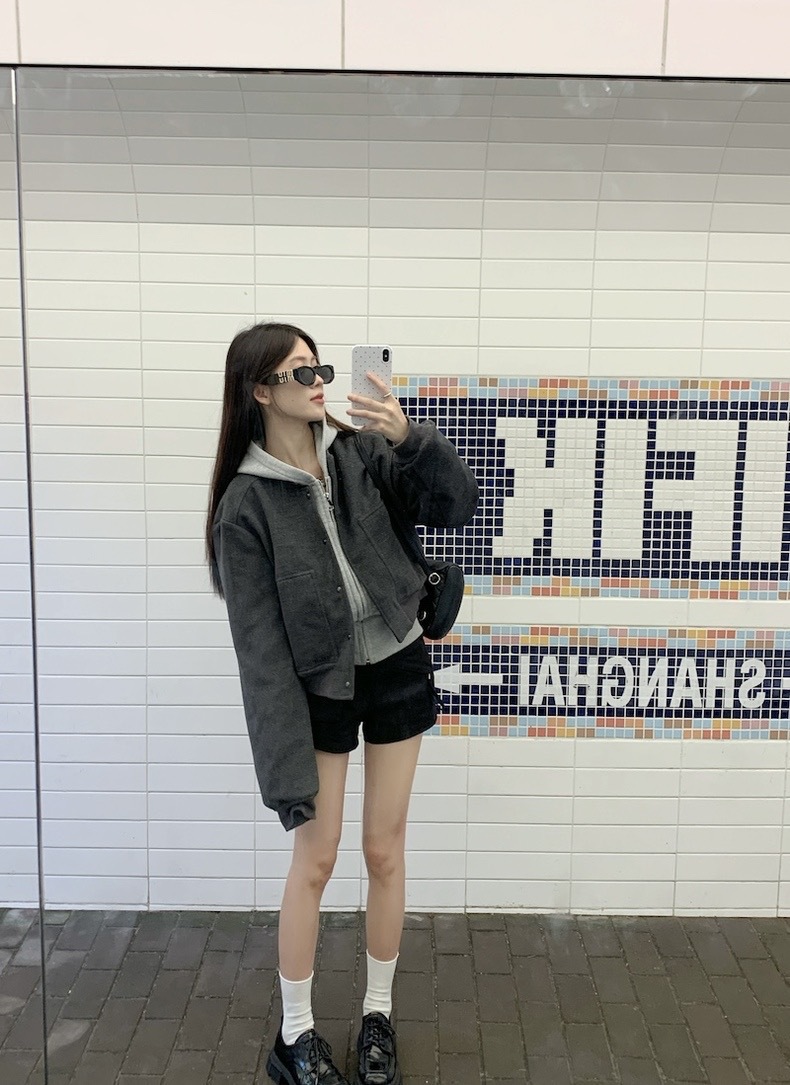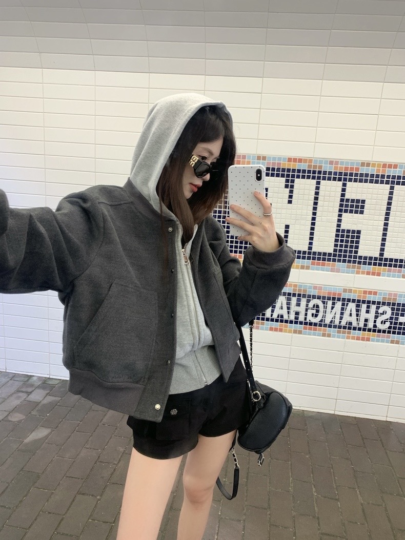 빈티지 후드 스티칭 짧은 재킷 코트 여자 가을 세트 센스 루즈 캐주얼 야구 세트 최고 트렌디 인스토어 가기