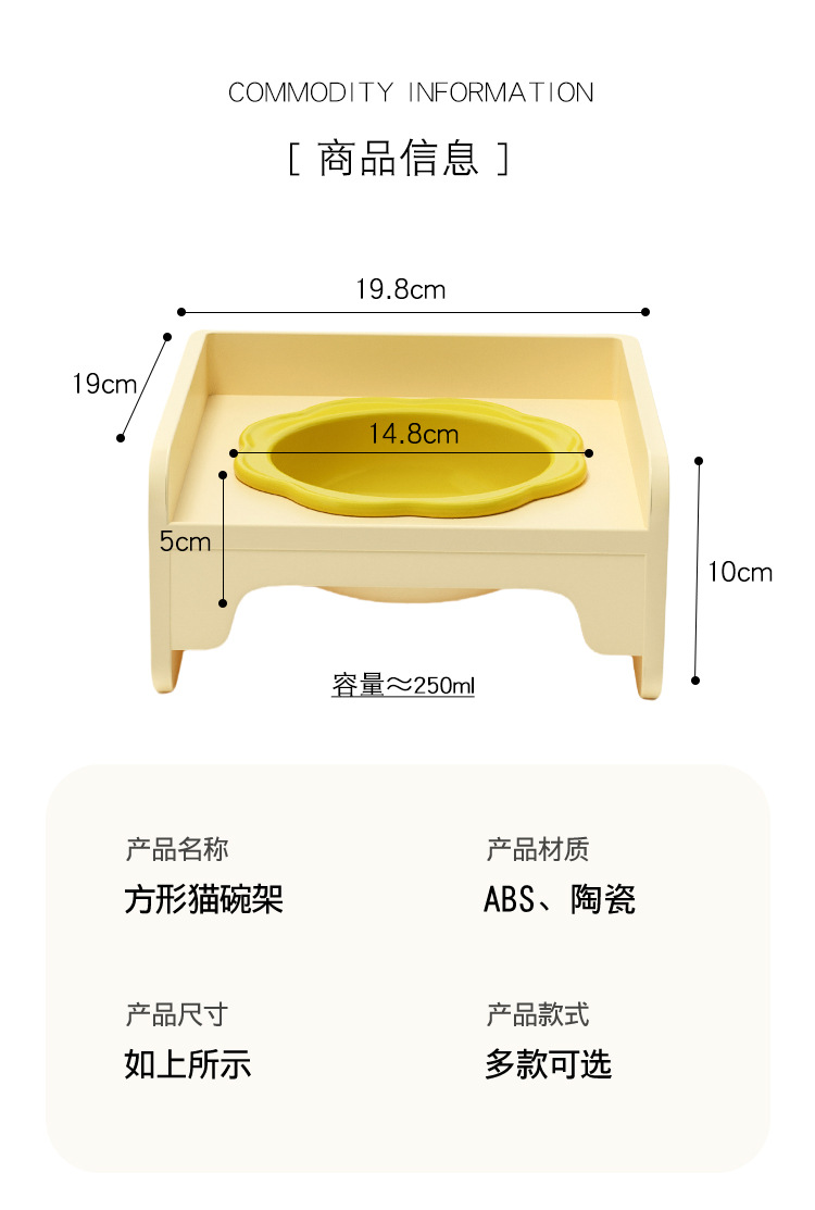 고양이 그릇 더블 그릇 세라믹 사각 그릇 고양이 마시는 그릇 고양이 다이닝 테이블 아기 고양이 먹이 그릇 애완 동물 보울에 팁이 쉽지 않음