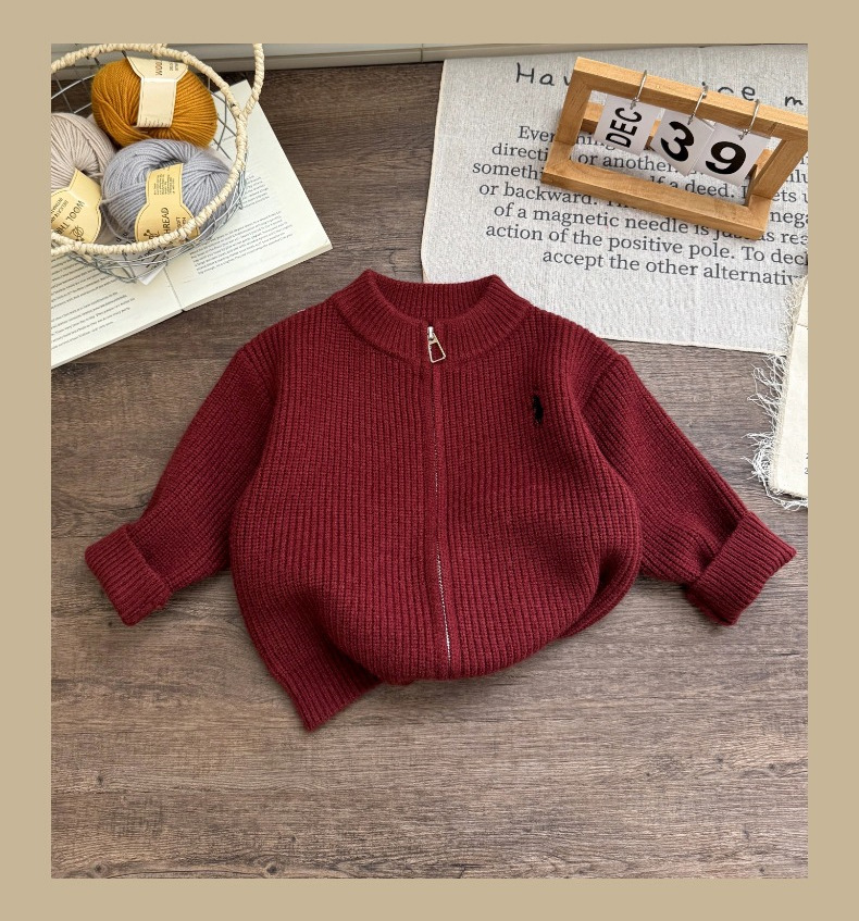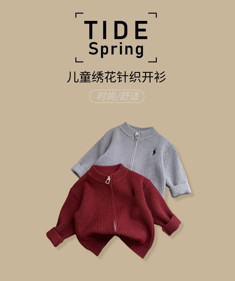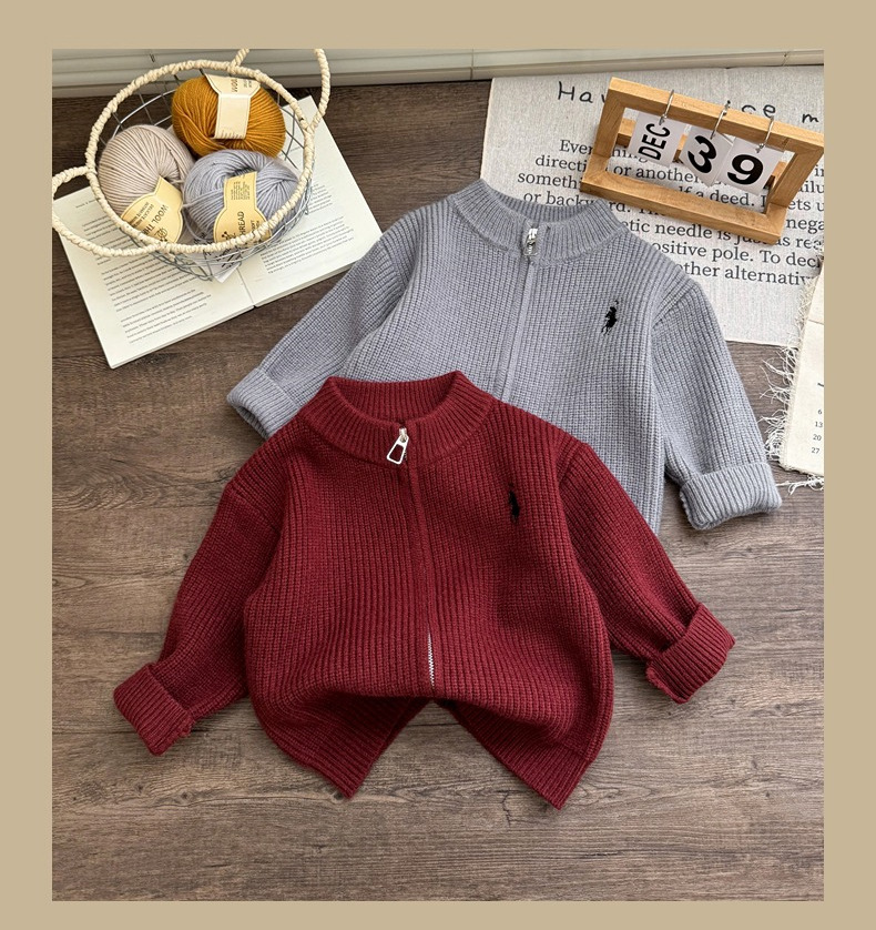 어린이 스웨터 카디건 2024 가을 겨울 새 소년 한국 니트 자켓 유행 가을 서양 스타일 자수 탑