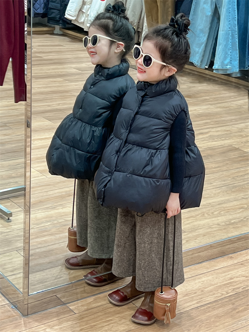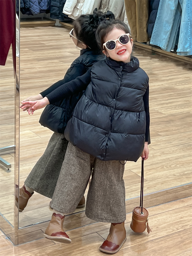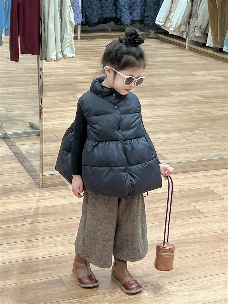 소녀 가을과 겨울 디자인 센스 니쉬 플라워 버드 세트 다운 코튼 따뜻한 솔리드 컬러 외부 조끼 코트 바지 싱글 팻스토어 가기